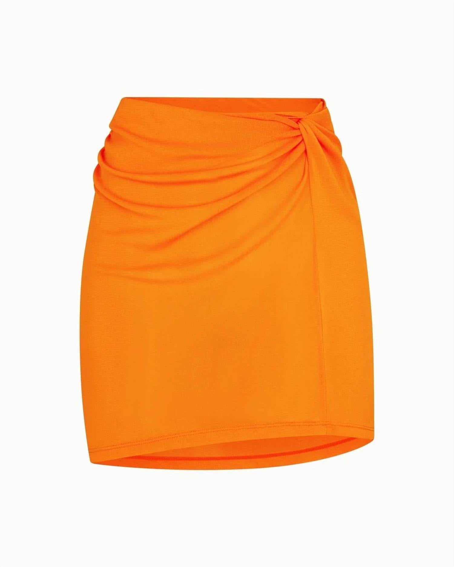 Show just the right amount of leg in this fit flattering mini. Introducing the Mesh Twist Mini Skirt by KHY, an eye-catching piece in vibrant orange designed for stylish summer outings. This mini skirt features a low rise, gathered twist detail, and an asymmetrical top hem, crafted from lightweight, sheer mesh fabric. Material: 100% Nylon. Closure: Pull on. Origin: Made in China. Care: Hand wash and line dry. Perfect for a beach day with its minimalist appeal.