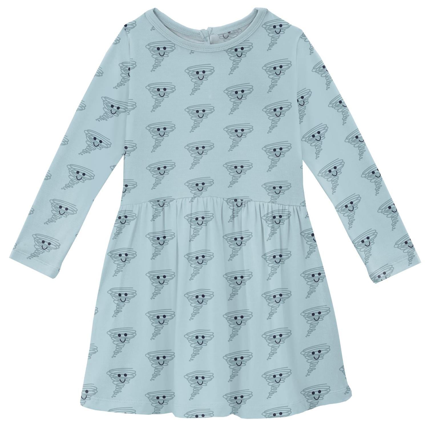 Discover the Girl's Long Sleeve Twirl Dress With Pockets by KICKEE, a delightful choice for any stylish occasion. This dress boasts long sleeves and is made from a blend of 95% viscose from bamboo and 5% spandex, offering a lightweight and breathable fit perfect for summer celebrations. With a fun swishing skirt and handy inset pockets, it's both fashionable and functional. Easy to care for with machine wash and low tumble dry instructions, the dress is crafted to the highest standards with OEKO-TEX® certification, ensuring comfort and safety for sensitive skin. Perfect for a memorable look in Spring Sky Happy Tornado.