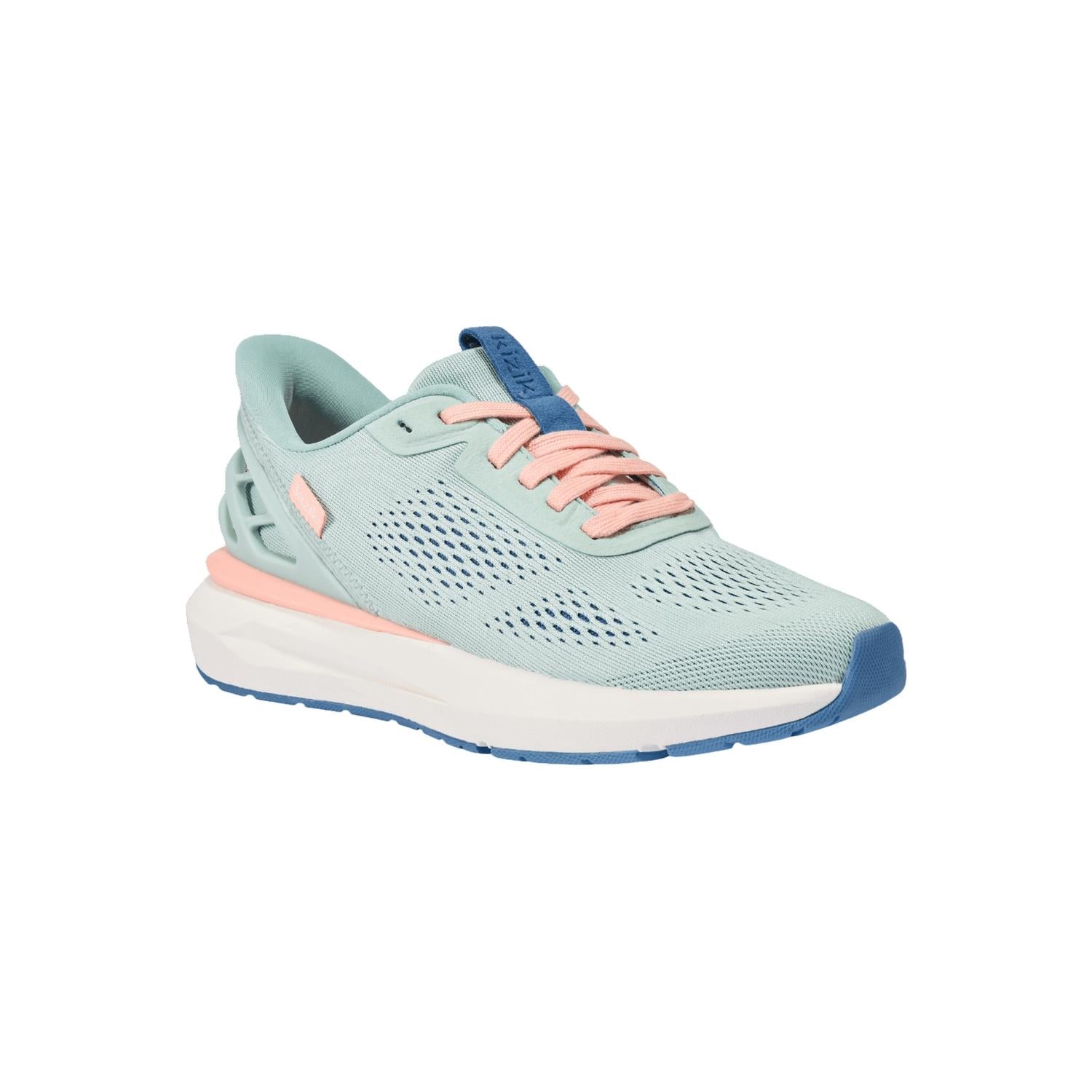 Get your daily steps in with these adorable sneakers. Step into spring with the Women's Athens 2 Sneaker by Kizik, a stylish choice for your holiday party and athleisure needs. With a round toe shape, this sneaker is crafted in a refreshing Surf Spray/Peach Parfait color that will elevate your sporty look. The Athens 2 is perfect for women who value both comfort and trendiness in their footwear. Specifically designed for adults, these sneakers are a must-have for any seasonal wardrobe update. Knit: Use a soft cloth or toothbrush to spot-clean knit upper with dishwashing liquid and water. Rinse and air dry. Leather: Spot-clean with soft cloth only. Insoles: Removable and machine washable. Air dry.