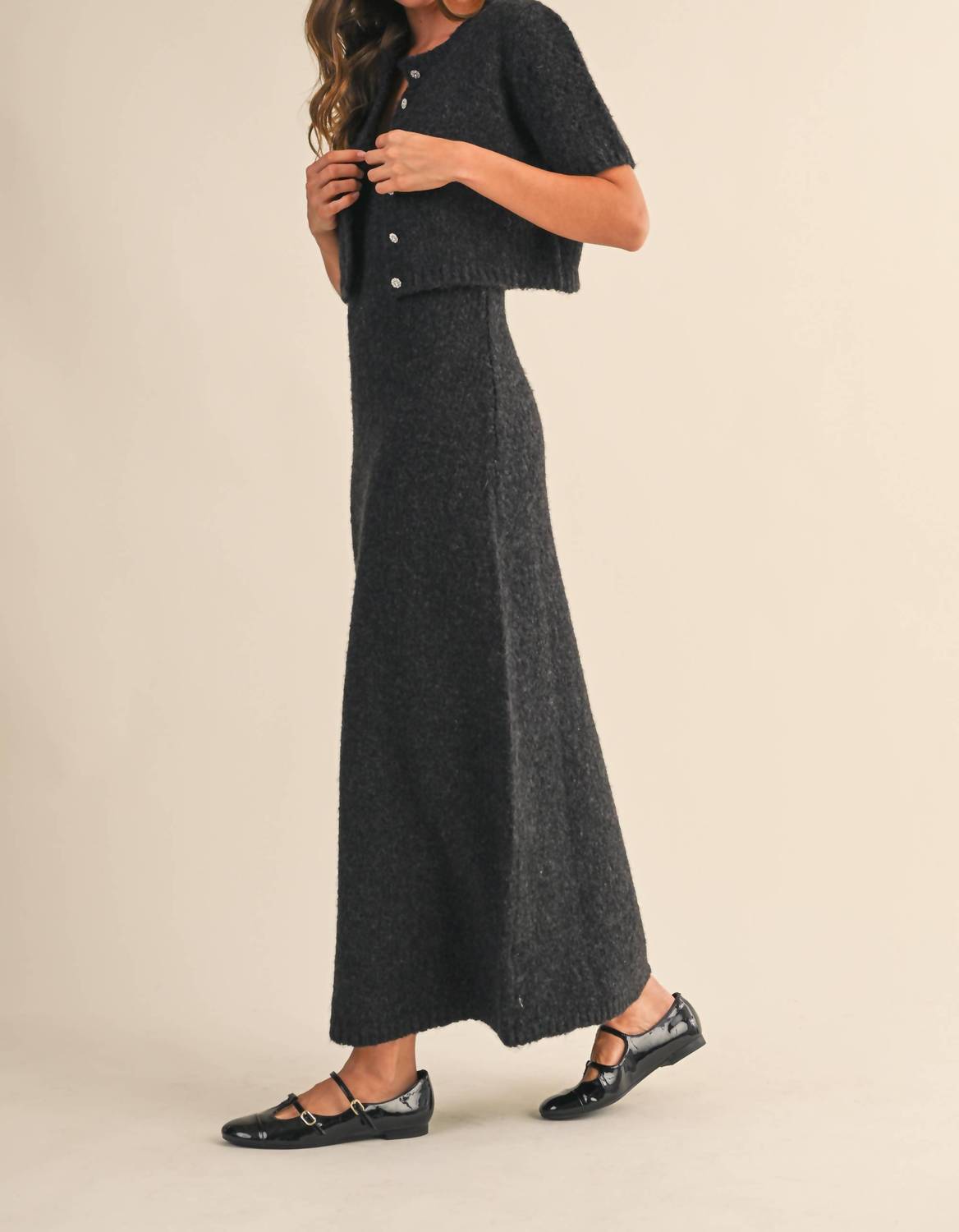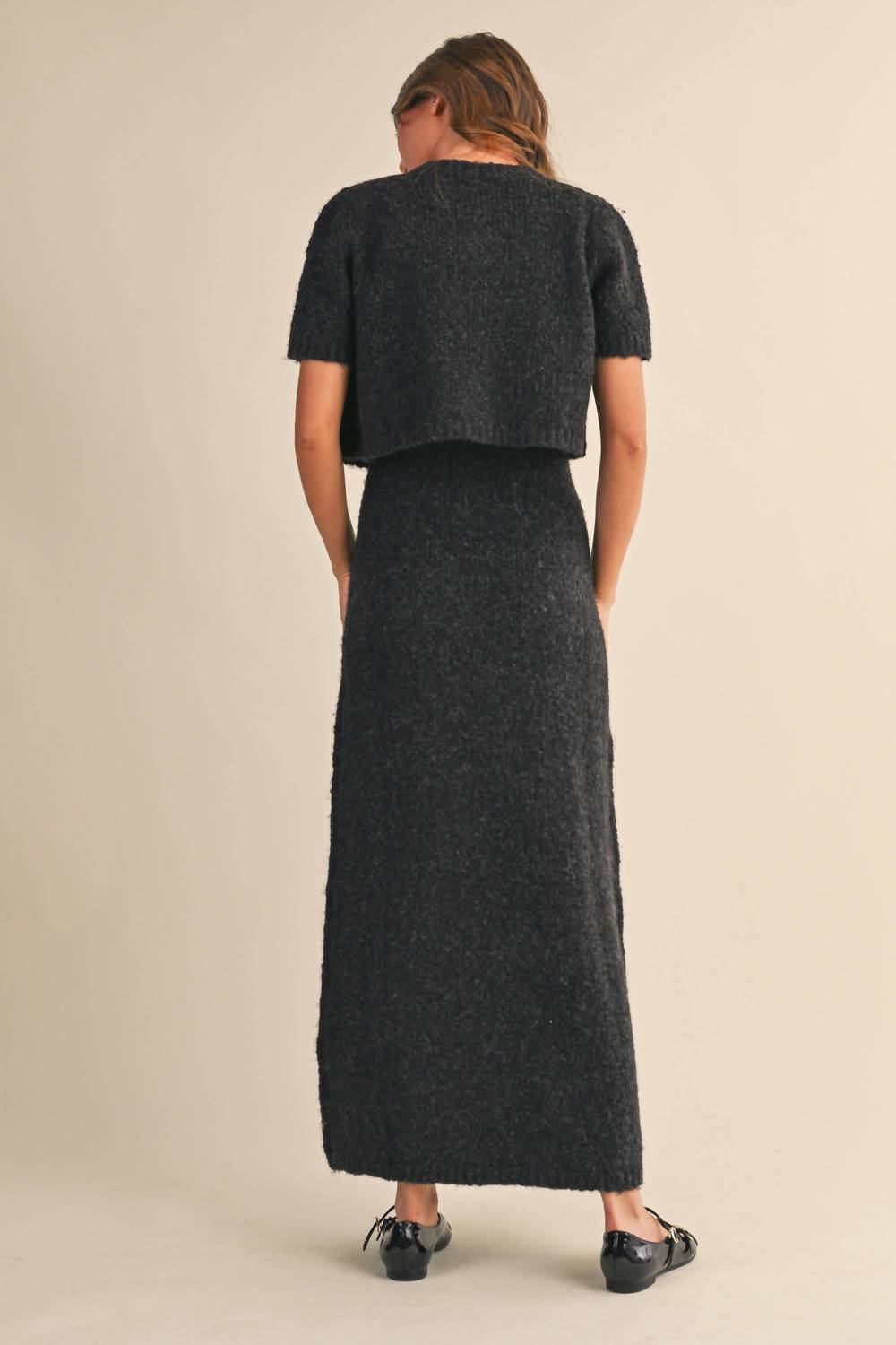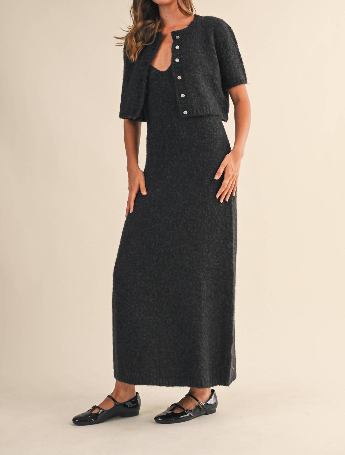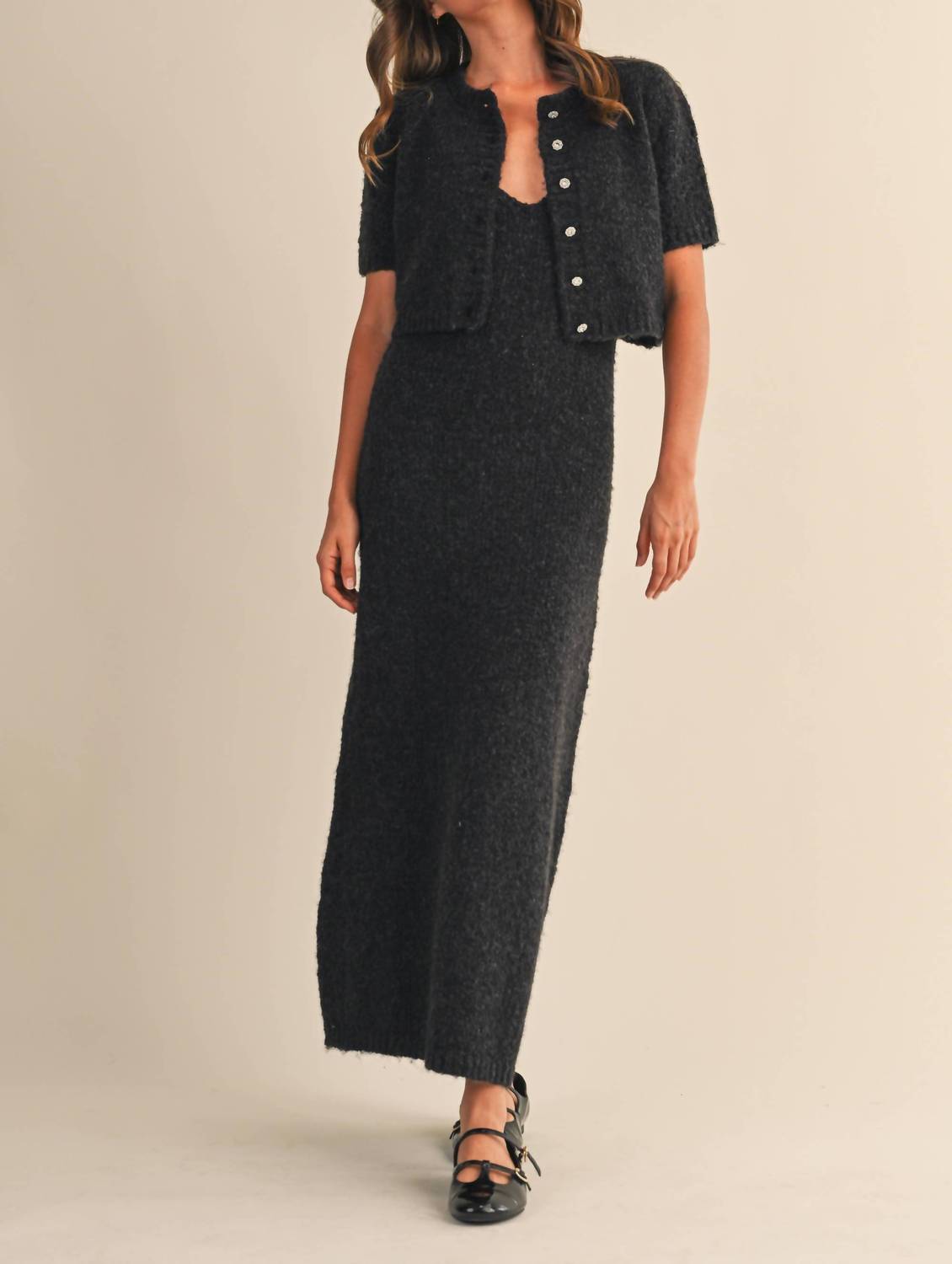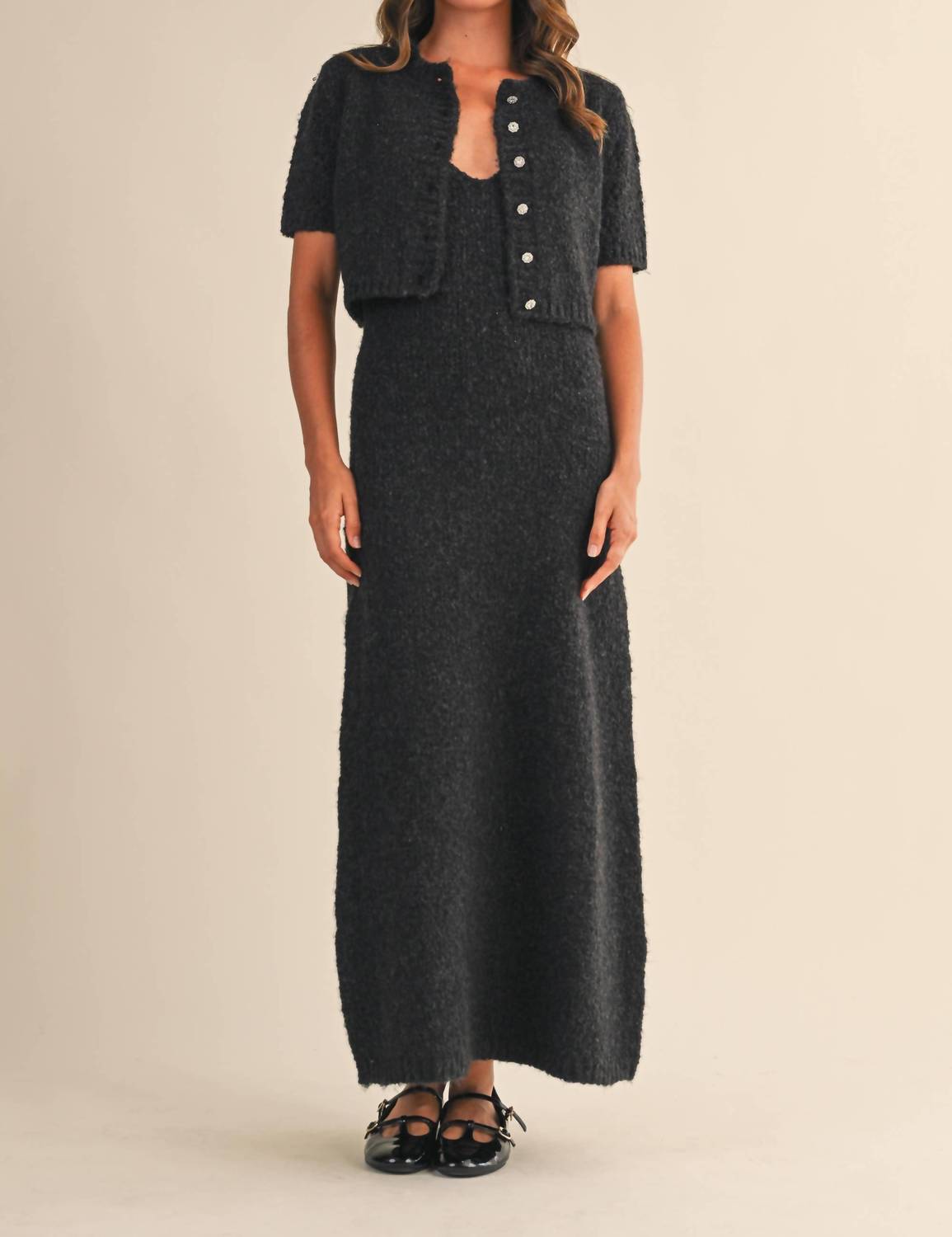 Who doesn't love a good maxi dress? This one you'll be reaching for season after season. Elevate your wardrobe with the Mary Cardigan And Sweater Maxi Dress Set by Klesis, a chic ensemble in a textured charcoal hue. The sleeveless maxi dress paired with a cropped cardigan offers versatility for any occasion. Crafted from a cotton blend, this pull-on set showcases a sophisticated scoop neckline and a sleek sheath silhouette. Ideal for fall and perfect for a holiday party, the set's soft, fuzzy fabric ensures comfortable, stylish wear all season long.