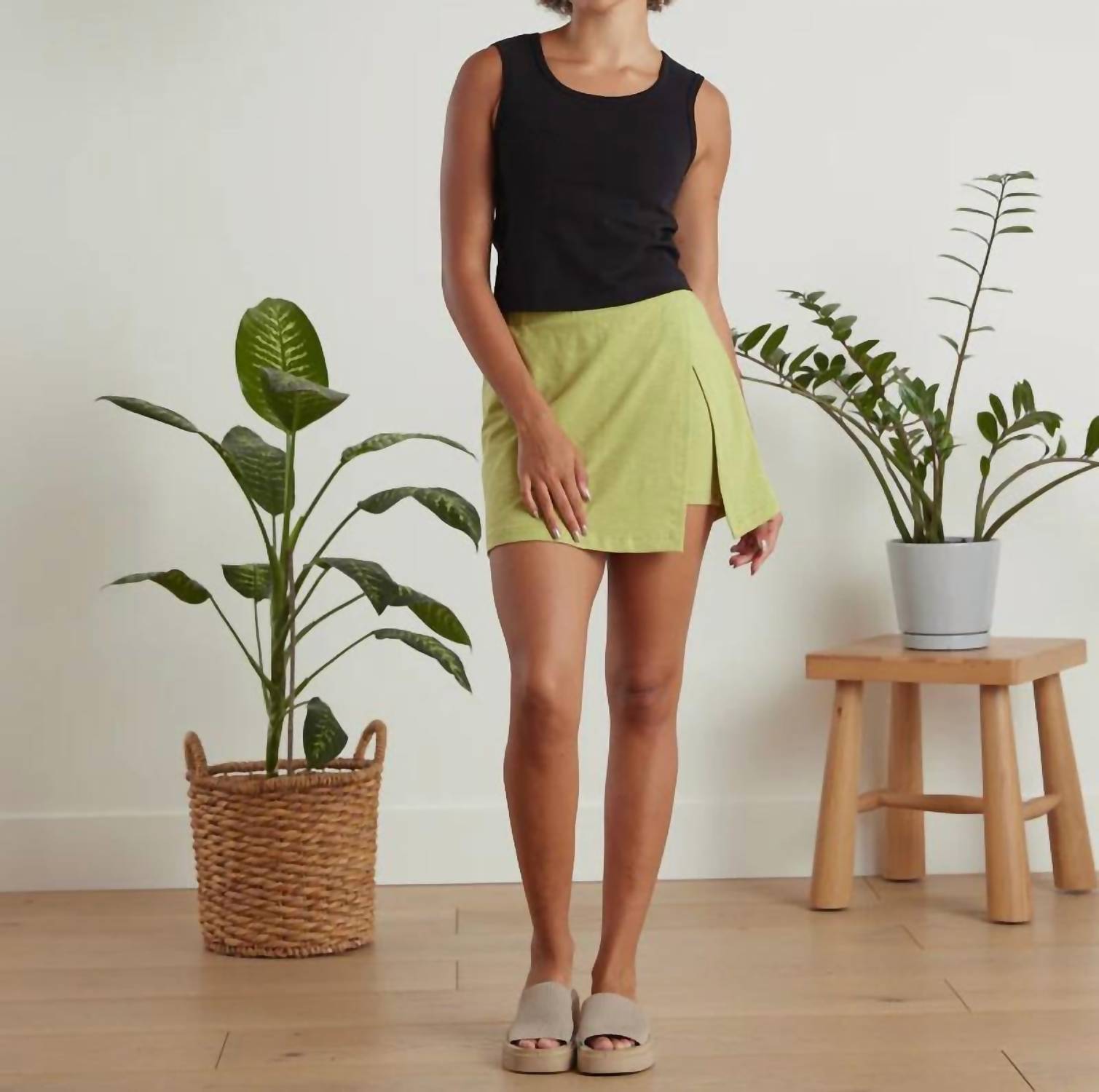 The cutest skort that combines style and functionality. Introducing the Westbrook Skort by Known Supply in a refreshing matcha hue, perfect for your minimalist spring wardrobe. This women's skort is crafted from a cotton blend, featuring 95% GOTS Certified Organic Cotton and 5% Spandex, delivering both comfort and a hint of stretch. Designed without pockets, it includes a convenient pull-on closure with an elastic waistband for easy wear. Embrace Fair Trade standards with this solid pattern piece, ideal for dinner parties.