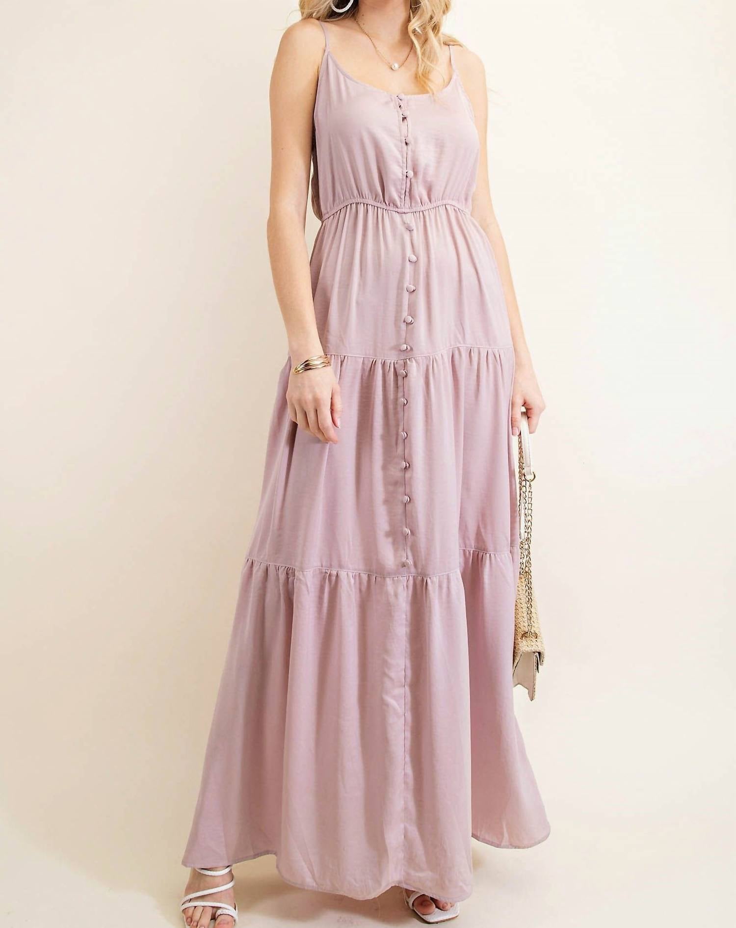 Who doesn't love a good maxi dress? This one you'll be reaching for season after season. Introducing the Button Down Tiered Dress by KORI, a chic addition to your summer wardrobe in vibrant pink. This maxi dress features spaghetti straps and a scoop neckline, complemented by an elastic waist for a comfortable fit. Made from 100% Polyester and designed with a slip silhouette, this dress is perfect for engagement occasions and embraces the monochrome trend. Closure: Button closure. Care: Machine wash. Ideal for Easter celebrations without the fuss.