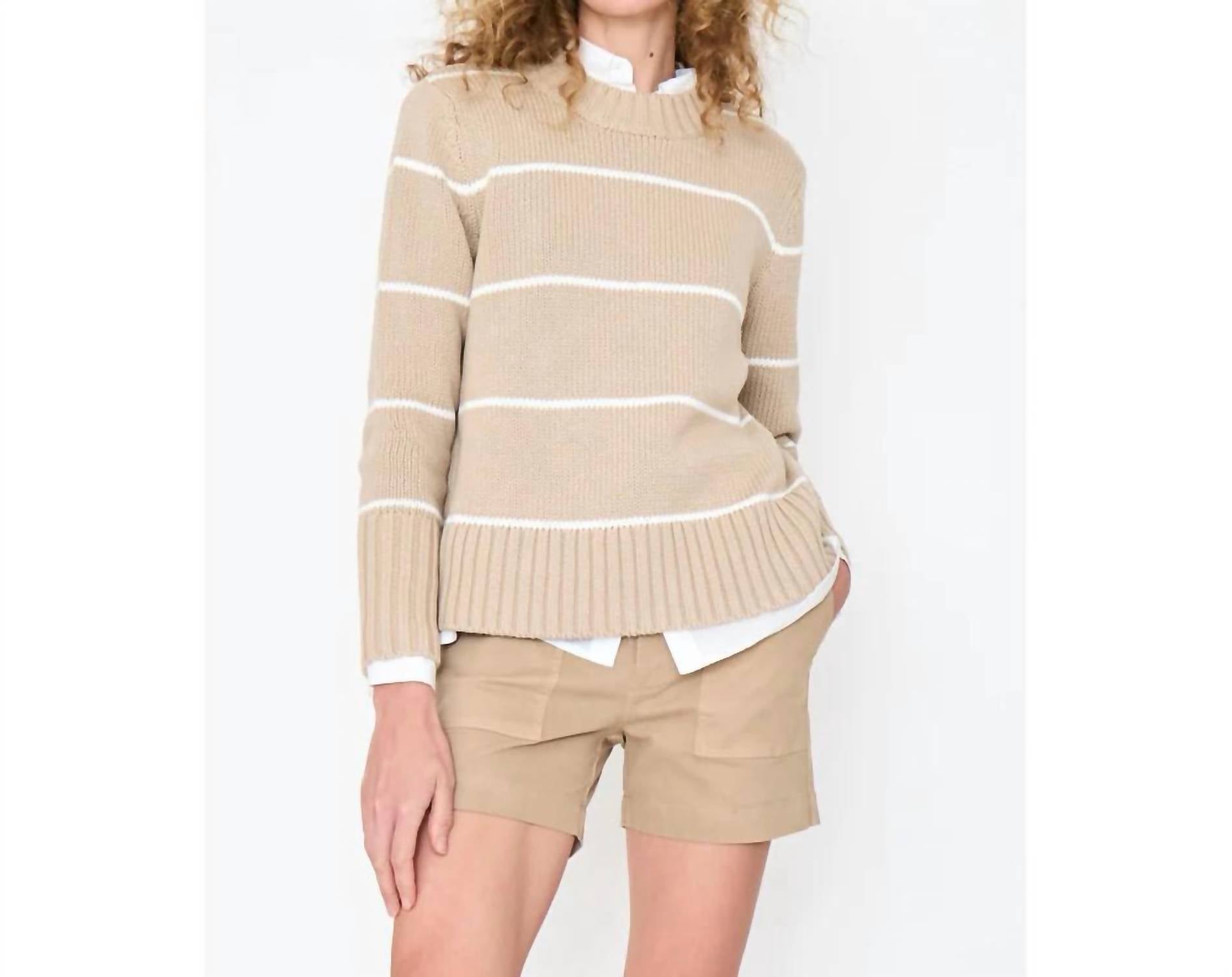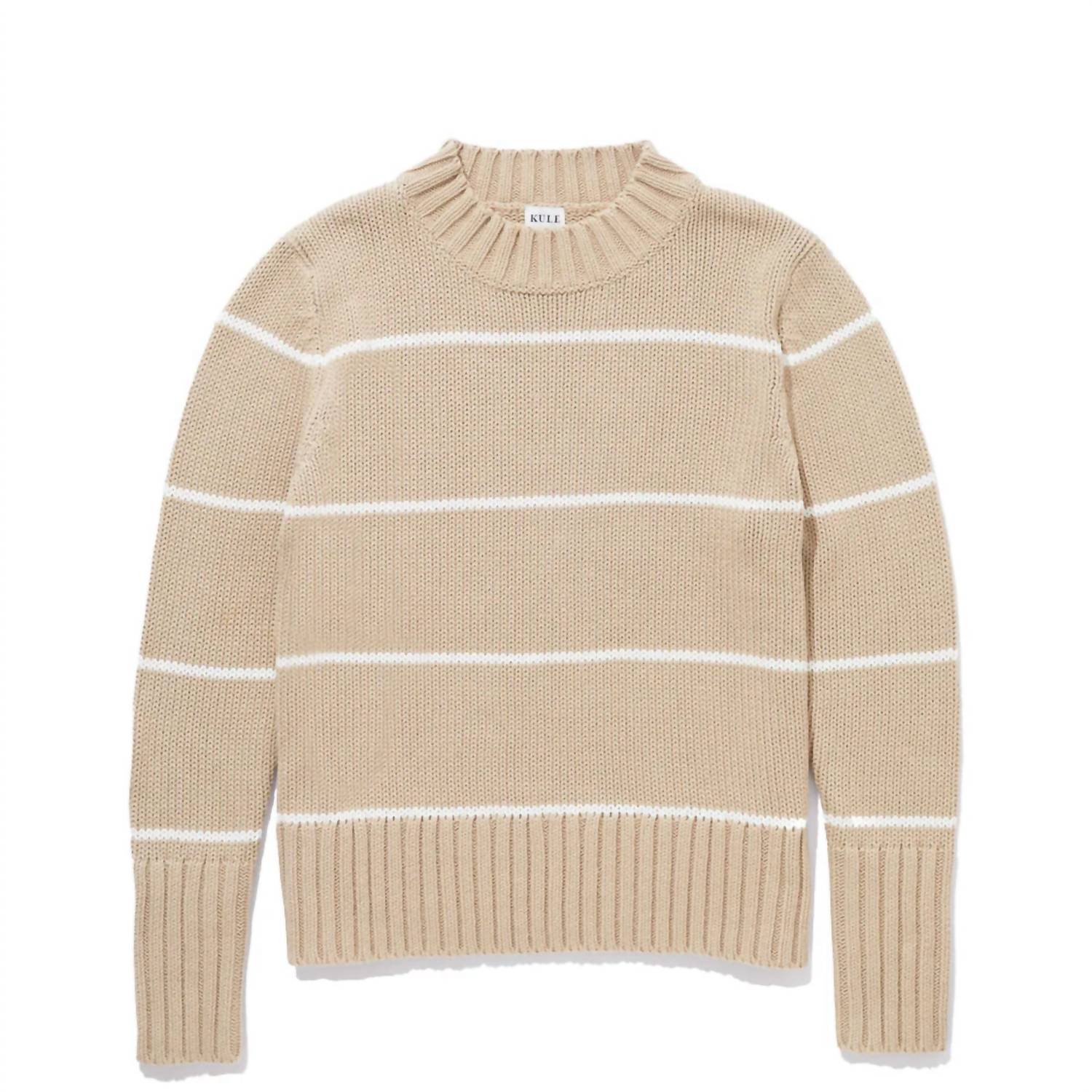 Experience the perfect blend of comfort and style with this trendy crew neck sweater, designed to effortlessly elevate your wardrobe. Pair it with your favorite denim and loafers for the perfect look. Introducing the Tatum Ministripe Sweater by KULE, a must-have in Sand White for a minimalist, holiday trend. This long sleeve sweater is crafted from 100% cotton with a textured pattern for a sophisticated look. Designed with a crewneck and pull-on closure, this piece is imported and perfect for a holiday party ensemble. Care instructions recommend dry clean only to maintain its quality and texture.