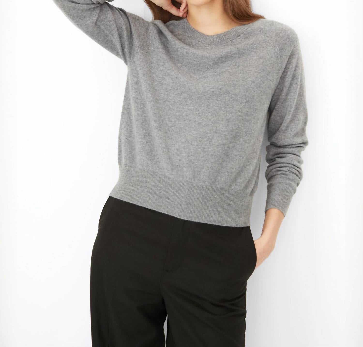 Experience the perfect blend of comfort and style with this trendy crew neck sweater, designed to effortlessly elevate your wardrobe. Pair it with your favorite denim and loafers for the perfect look. Elevate your travel wardrobe with the Sydney Cashmere Sweater by KULE in timeless Heather Grey. This women's crewneck sweater features long raglan sleeves for a relaxed fit and minimalist appeal. Made from 100% Cashmere, it offers a luxurious feel, perfect for fall. Closure: Pull-on. Care: Dry clean only. Garment length: 20.5".