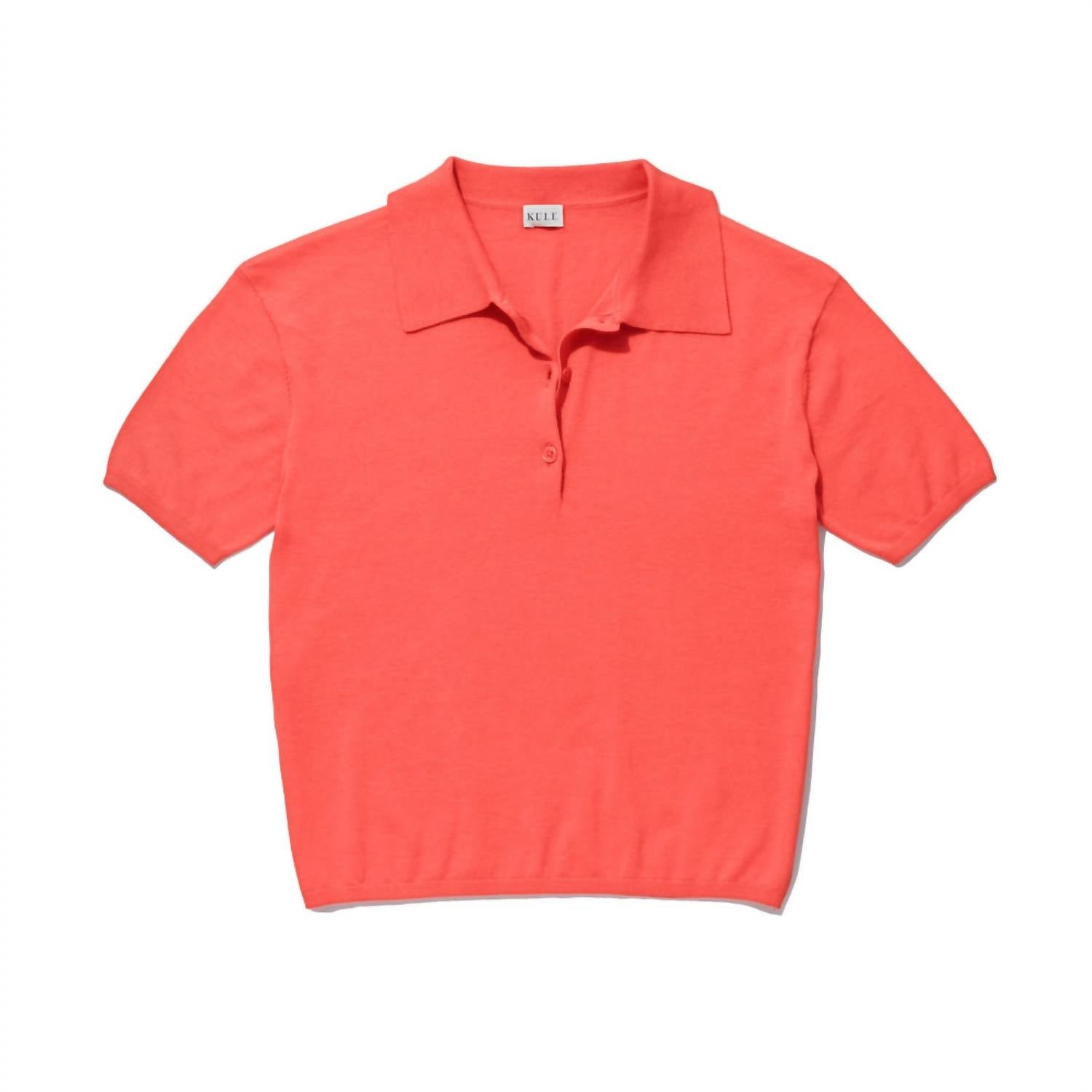 Look no further, you just found your perfect tee! The Farley Top by KULE in poppy is an elegant polo sweater for women, designed with short sleeves and a chic collared neckline. Crafted from a lightweight blend of 90% cotton and 10% silk, its superfine knit offers a luxe feel. Imported for quality, this top features a button closure and is perfect for a spring streetwear look. Care: Dry clean only. Note: Runs small, recommended to size up for a less shrunken fit.