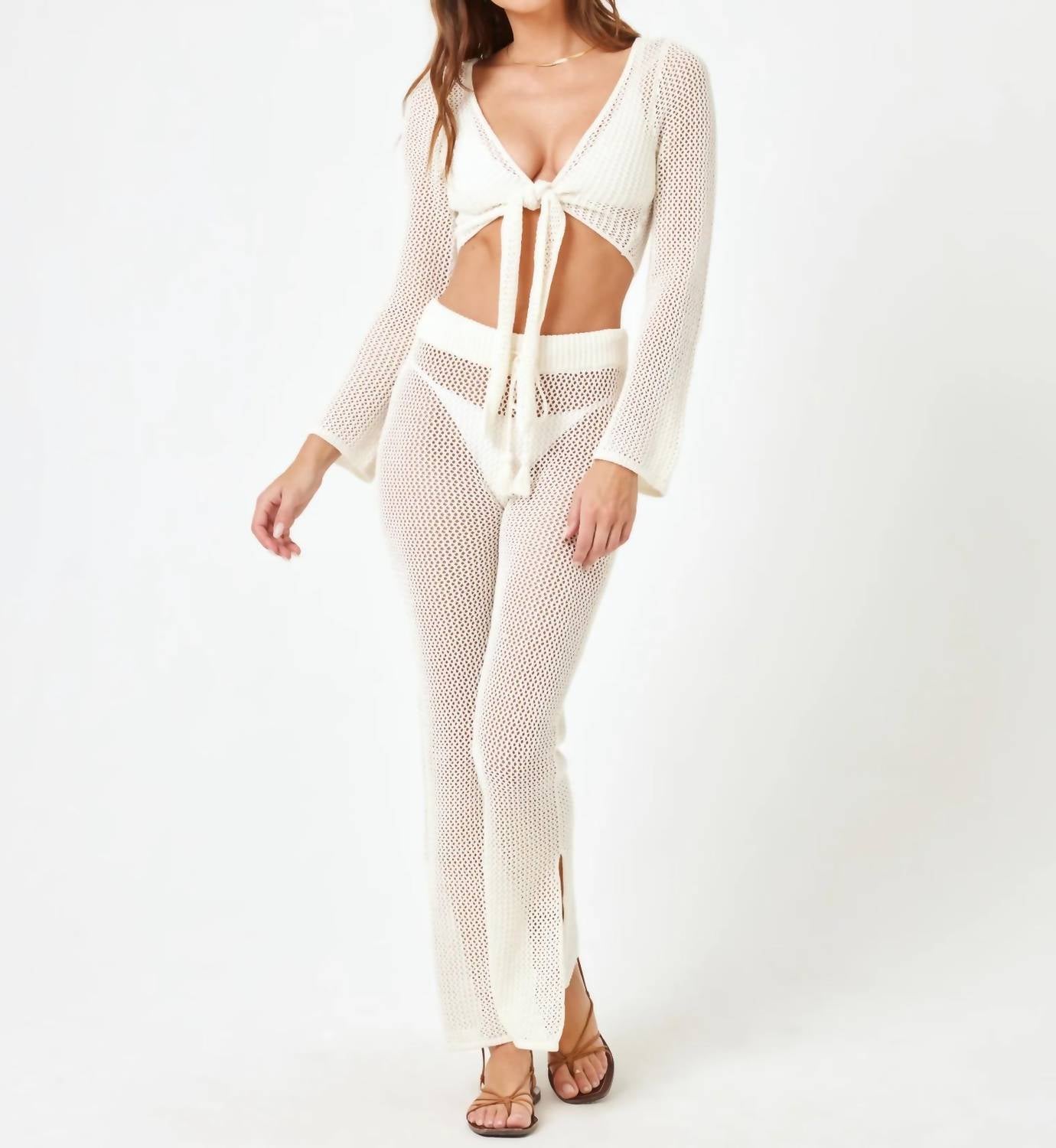 Embrace the Boho Chic vibe, must-have for your next beach day. Cream, wide-leg pants feature a high waist and a comfortable pull-on closure. Crafted from 100% cotton crochet knit, offer effortless style and a light, breathable feel. Hand wash in cold water and lay flat to dry for best results.