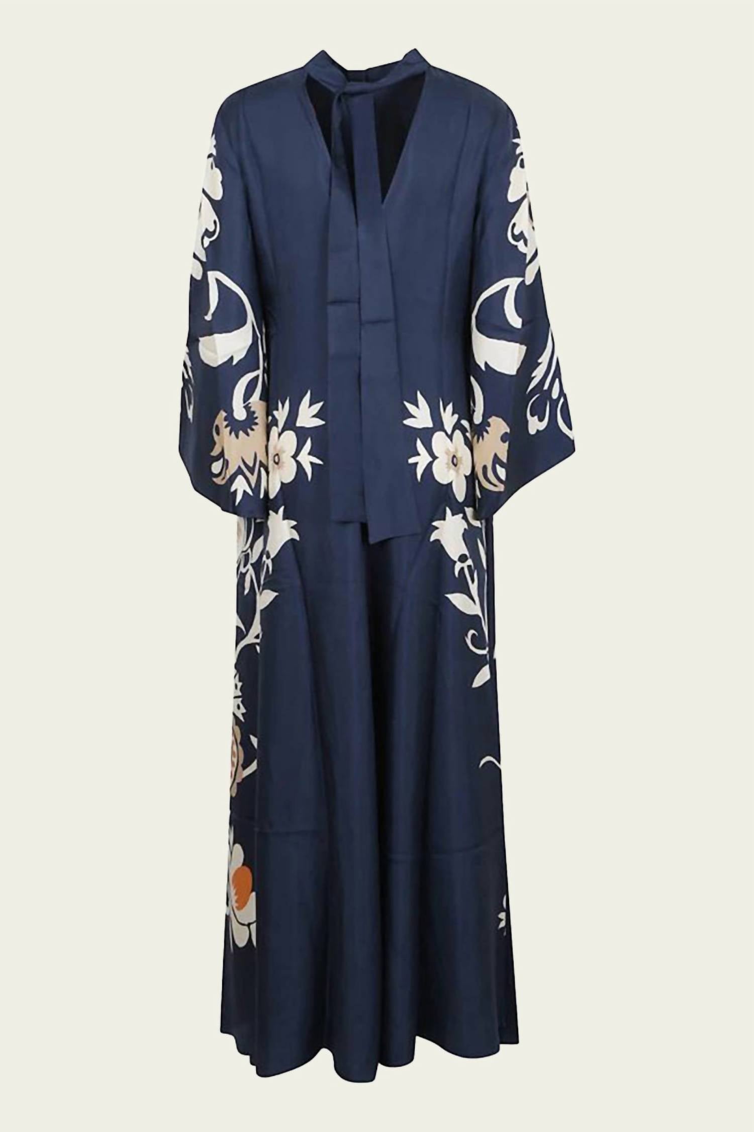 Style this maxi with your favorite statement necklace and sandals for the perfect look. The Magnifico Maxi Dress by La DoubleJ is a stunning blend of maximalist elegance and Italian craftsmanship. This kaftan silhouette dress features a mock neck and long sleeves, crafted from 100% silk in the vibrant Selva Placée Blue with a captivating geometric pattern. Originating from Italy, the dress is designed with a convenient pull-on closure for easy wear. Care for this luxurious piece by dry cleaning only.