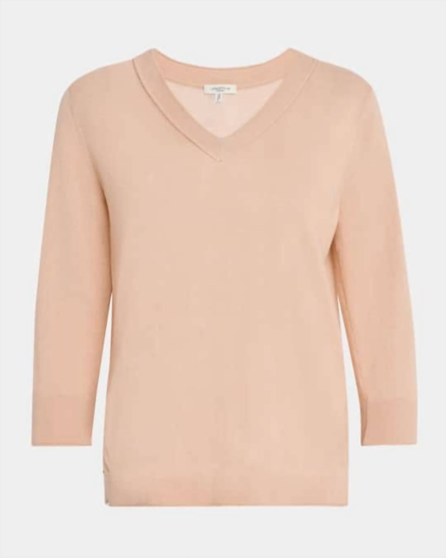 Wear this v-neck sweater with your favorite denim for the perfect fall look. Expertly crafted from a new exquisitely soft, ultra-lightweight fine gauge cashmere, this three-quarter sleeve sweater is a versatile layering piece that also wears well alone. The V-neck silhouette is perfectly relaxed and artisanally finished with rounded trim and softly rolled edges.