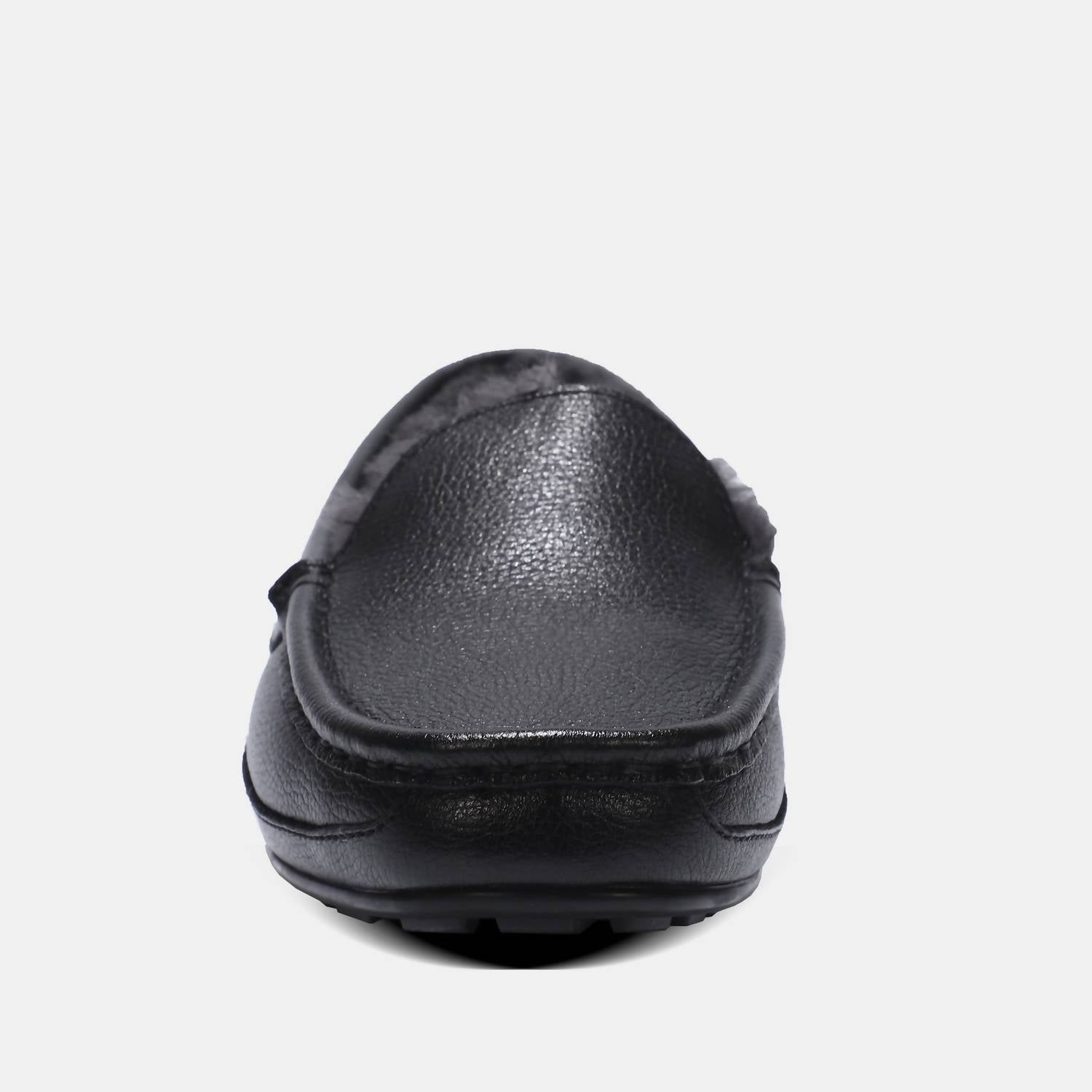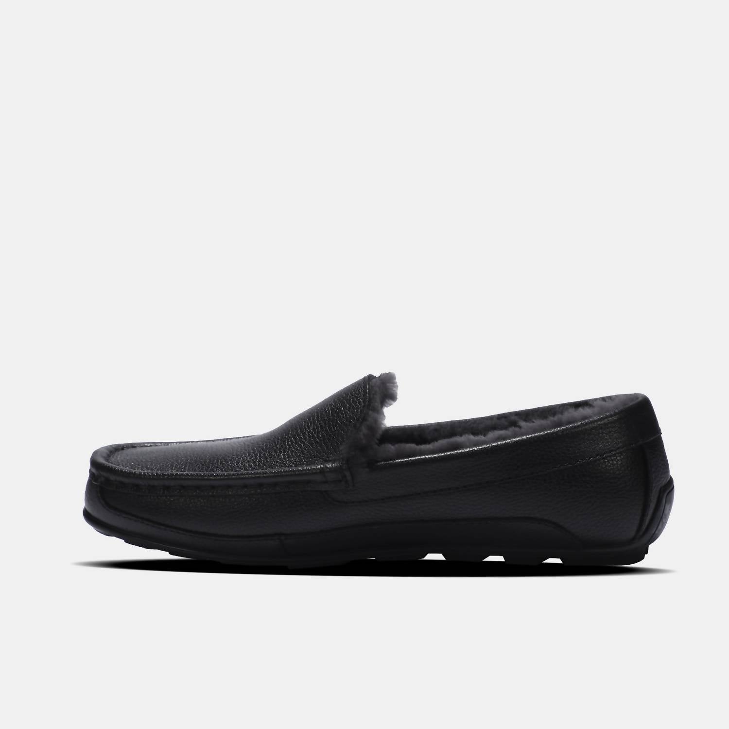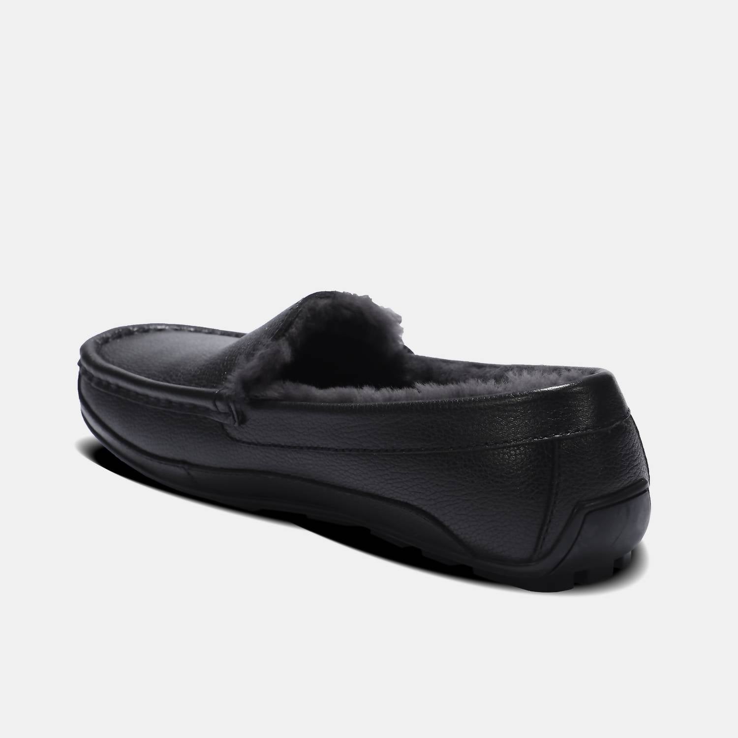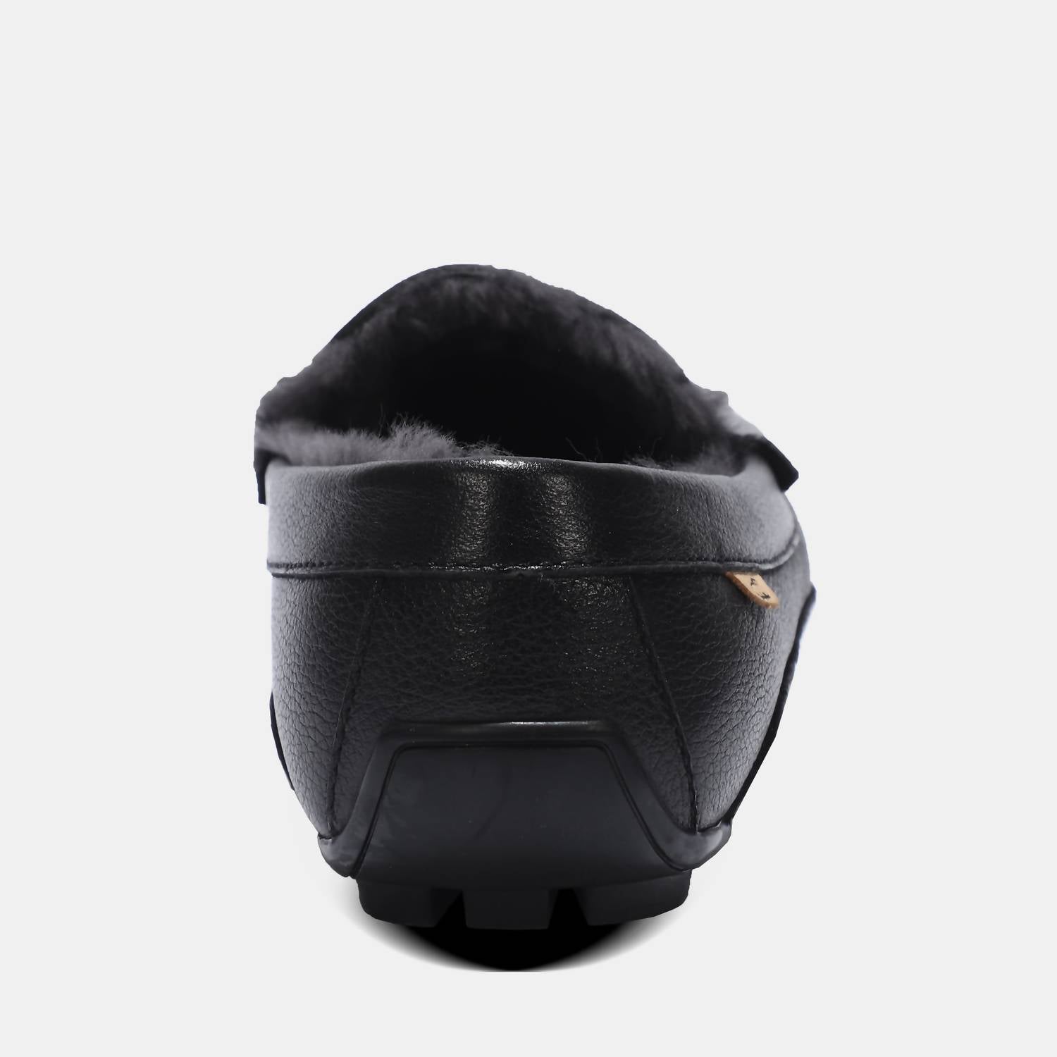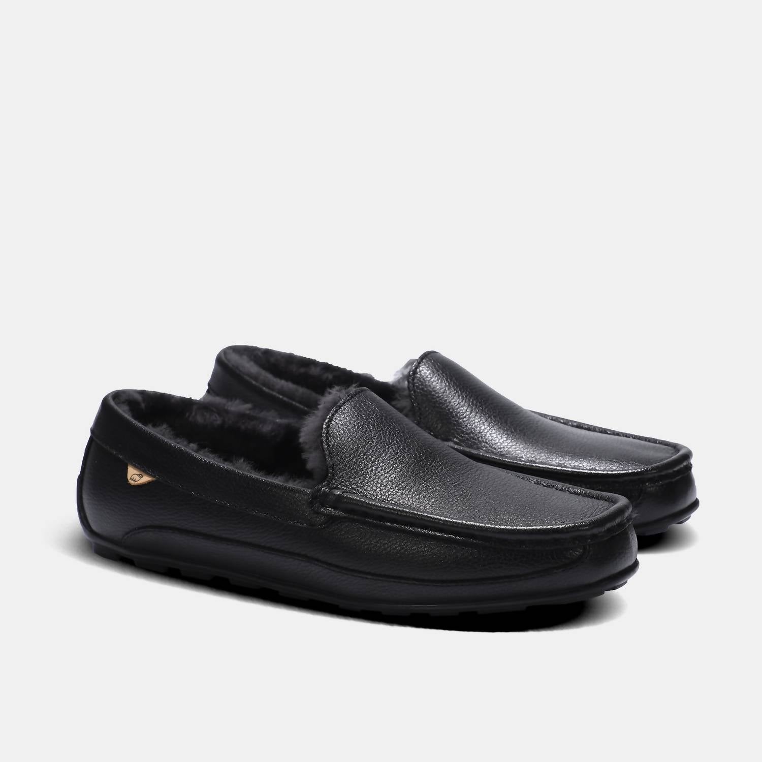 Experience everyday luxury with the Men's Grayson Leather Moccasin by Lamo, crafted for supreme comfort and style in classic black. These moccasins feature a premium leather upper and a 100% Australian sheepskin footbed, lined with premium faux fur for added warmth. They are designed with the Cirrus Footbed System™ memory foam to support your feet throughout the day, finished with a durable LâMO TPR outsole. Ideal for travel and streetwear, these leather mocs bring a polished touch to your summer wardrobe with their round toe and flat heel design.