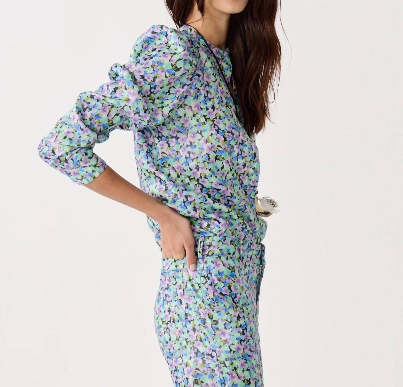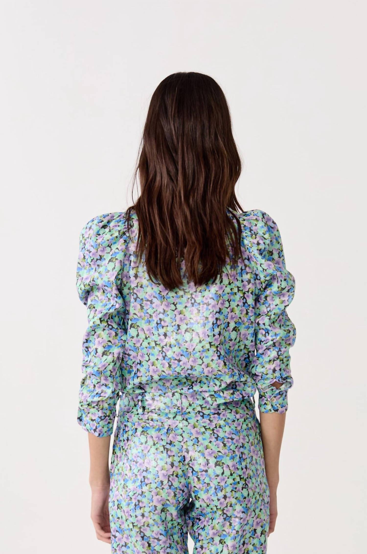 A versatile blouse that works from desk to dinner! Introducing the Lillium Metallic Linen Shirt by Lanhtropy, a striking piece in Meadow Print crafted for those who appreciate unique details. This blouse showcases elegant three-quarter sleeves with puffed shoulders and a mandarin collar for a feminine, flattering fit. Made from 100% natural linen, it features a distinctive metallic foil coating, shell buttons, and measures 24 inches in length. Crafted in Vietnam, this delicate piece requires careful handling; hand wash and lay flat to dry for optimal care.