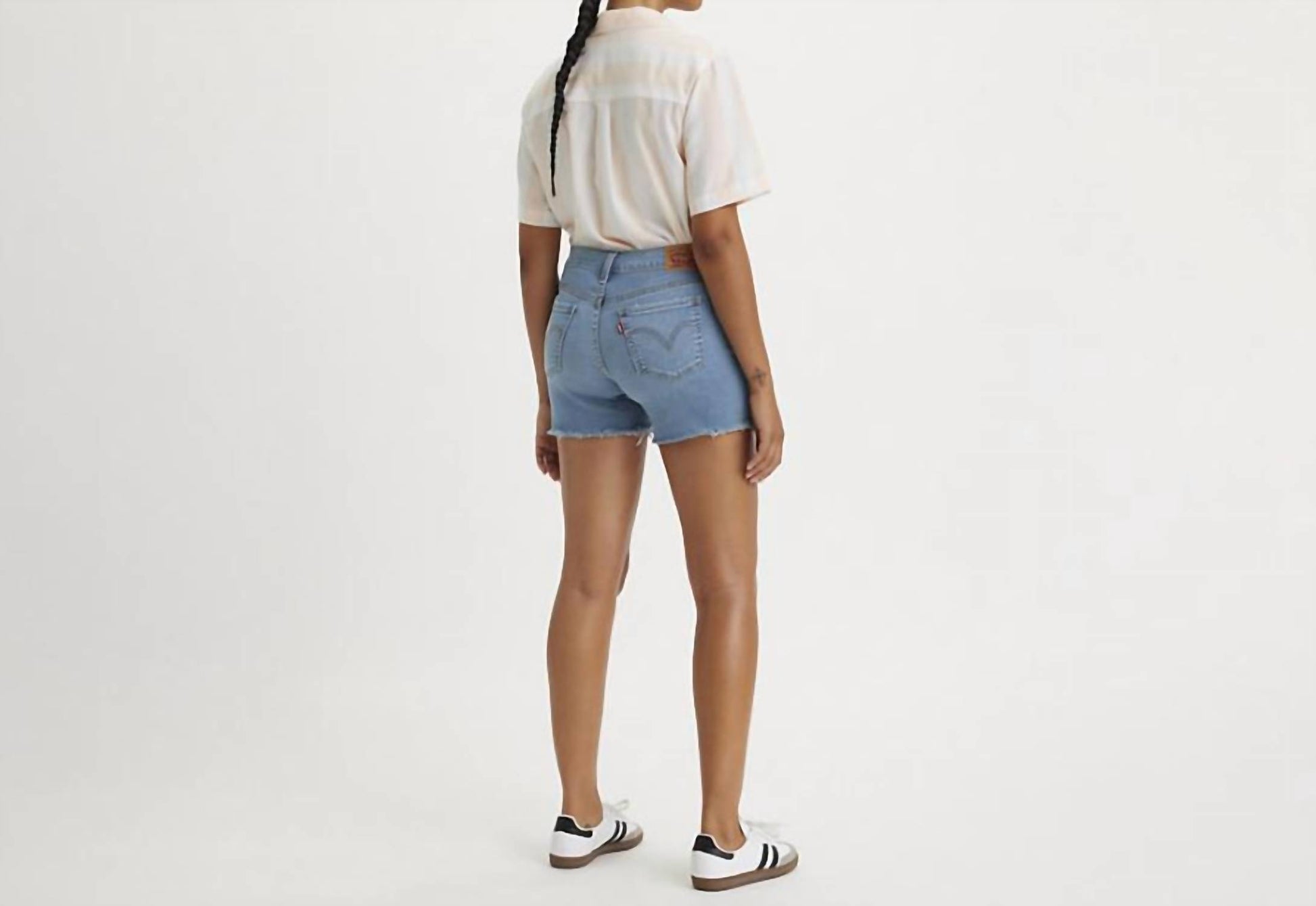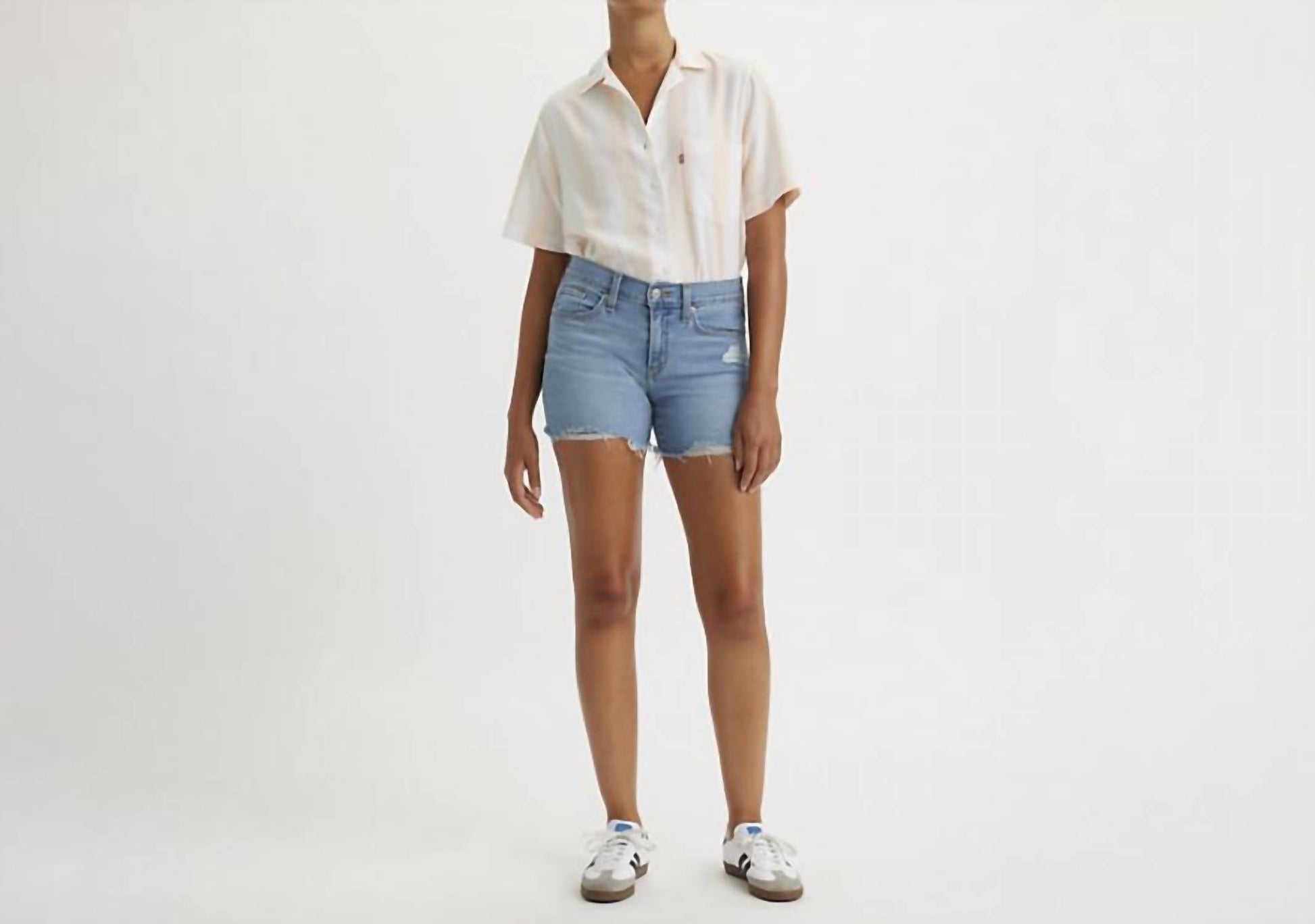 Not only cute but extremely comfortable. The jean shorts you will be reaching for all season long. Elevate your summer wardrobe with the LEVI'S Mid Length Jean Shorts in "I'm Just A Fan Medium Wash," perfect for streetwear enthusiasts. These women's shorts feature a slim fit, cut from a stretchy cotton blend denim for comfort and style, with a flattering mid-rise of 9 inches. Made with 81% Cotton, 18% Polyester, and 1% LYCRA®, they offer a versatile 5-pocket styling and a reliable zip closure. Care is easy with machine wash and tumble dry, making them ideal for those casual dinner parties this season. Measurements include an inseam of 4.5 inches and a leg opening of 21.25 inches, based on a size 27 waist.