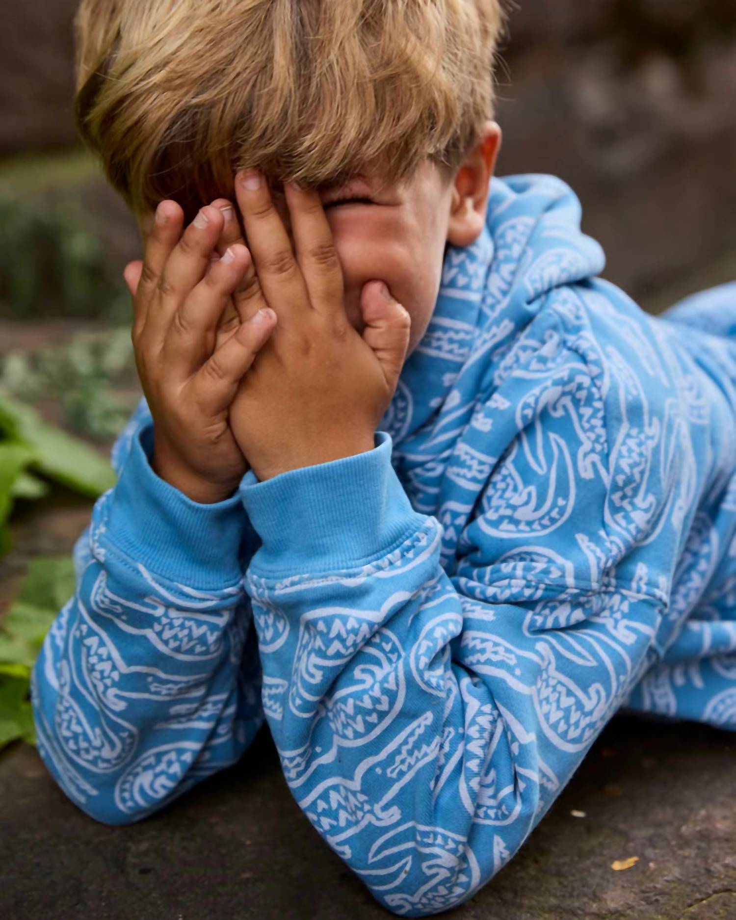 Introducing the Boy's Alligator Hoodie by Lewis, a must-have for cozy comfort and playful style. Featuring a charming alligator pattern, this blue sweatshirt is crafted from super soft organic cotton, ideal for year-round wear. Care for it easily with machine wash and tumble dry instructions, ensuring it stays as vibrant as day one. Perfect for fall, this piece is sure to become your child's streetwear favorite for back-to-school occasions.
