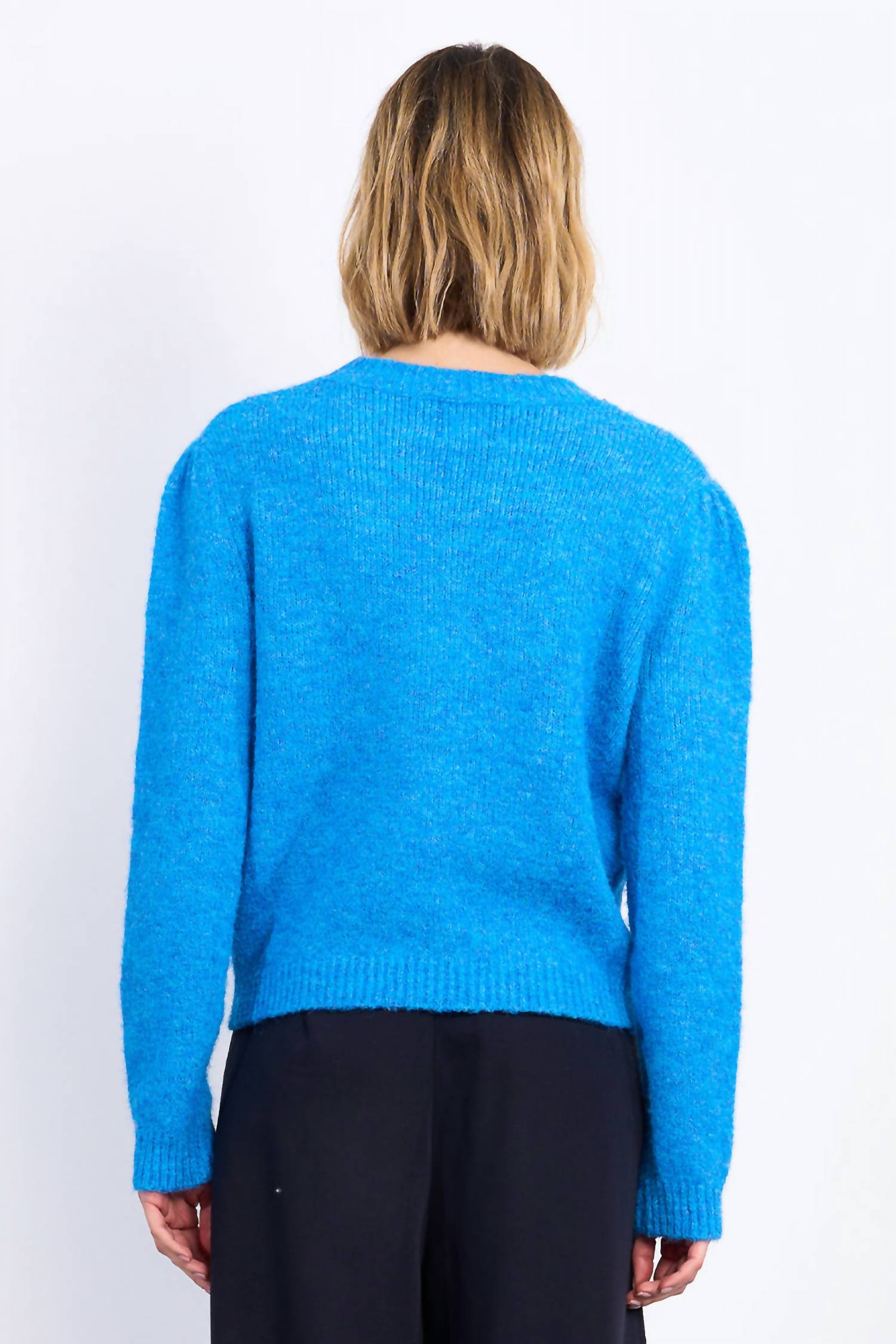 Experience the perfect blend of comfort and style with this trendy crew neck sweater, designed to effortlessly elevate your wardrobe. Pair it with your favorite denim and loafers for the perfect look. Embrace elegant sparkle with the Sequin Embellished Knit Sweater by Lili Sidonio. This women's sweater in sky blue features long sleeves with slight gathers on the shoulder line, and a scoop neckline adorned with a dazzling array of sequins. Crafted from a blend of 80% Polyester, 12% Polyamide, 7% Wool, and 1% Elastane, it offers a straight fit with a length of 21.7 inches from the shoulder for size S. This pull-on style is perfect for holiday parties and embraces the boho chic trend.