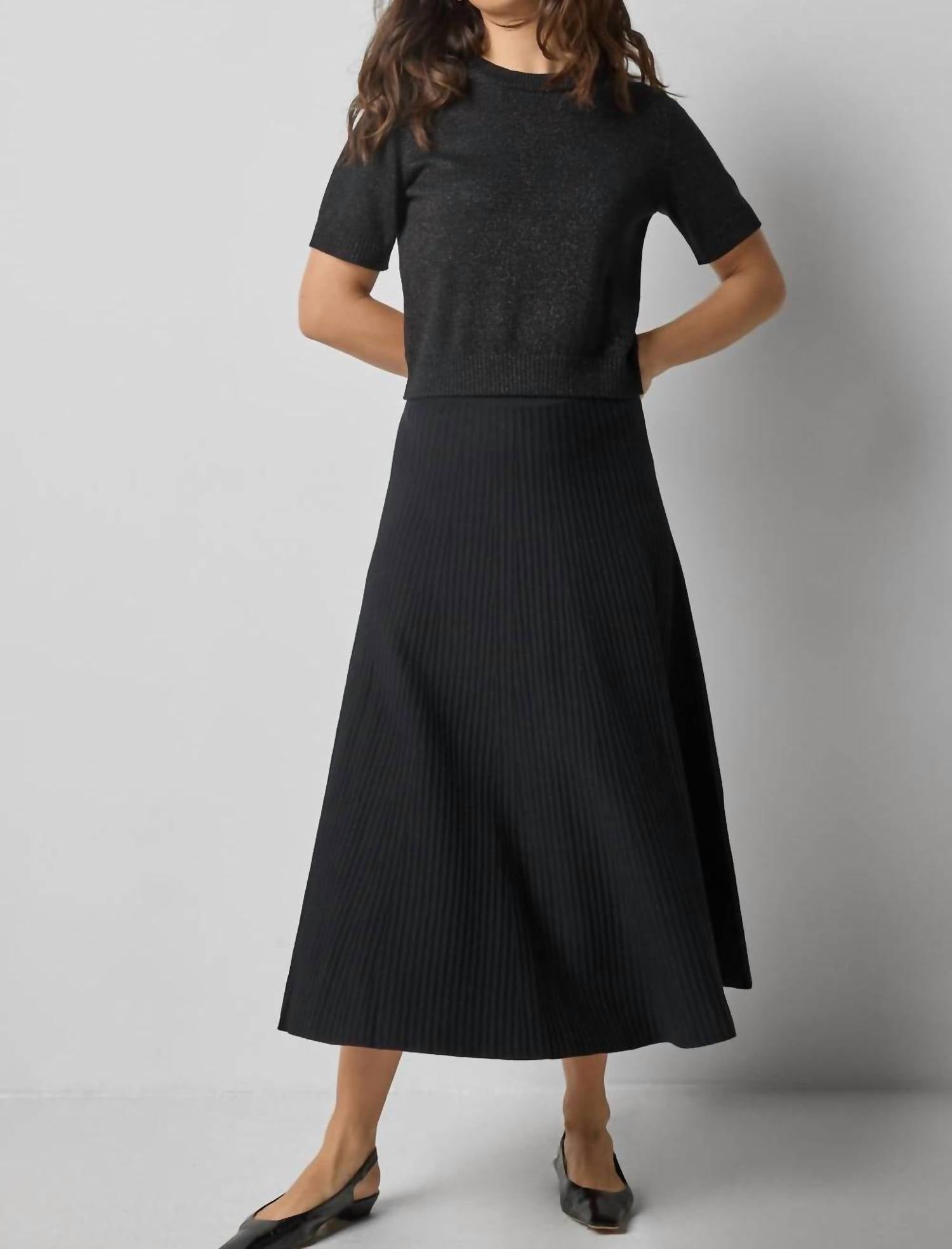 Experience the perfect blend of comfort and style with this trendy crew neck sweater, designed to effortlessly elevate your wardrobe. Pair it with your favorite denim and loafers for the perfect look. Discover the Lilla P Short Sleeve Sparkle Sweater, a chic and versatile addition to any wardrobe, available in an eye-catching Black Sparkle. Crafted from 95% cotton and 5% cashmere, this refined cotton blend sweater offers a luxurious feel with a subtle shimmer thanks to Lurex threads. The garment's slightly shorter length and soft shimmer knit texture ensure a flattering look that pairs beautifully with both skirts and denim. Care: Hand wash cold separately with mild soap, lay flat to dry, cool iron if needed, and avoid dry cleaning. Closure: Convenient pull-on style.