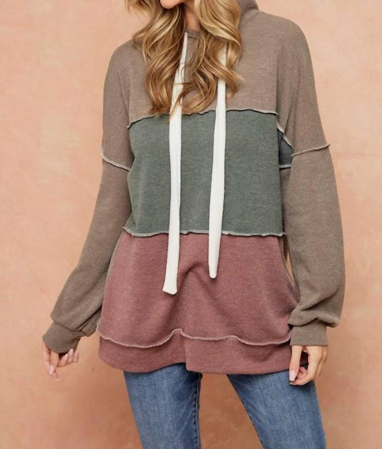 Whether you're running around town or lounging at home, this sweatshirt works for both. Introducing the Women's Tilda Oversized Color Block Hoodie by Lovely Melody, a must-have for stylish comfort. This long sleeve hoodie is crafted from a blend of 88% polyester, 8% rayon, and 4% spandex, ensuring a cozy and flexible fit. Featuring a pull-on closure, it's perfect for a laid-back boho chic vibe in multi-color. Made for easy casual wear, this piece enhances your activewear collection, ideal for vacation in chillier climates.