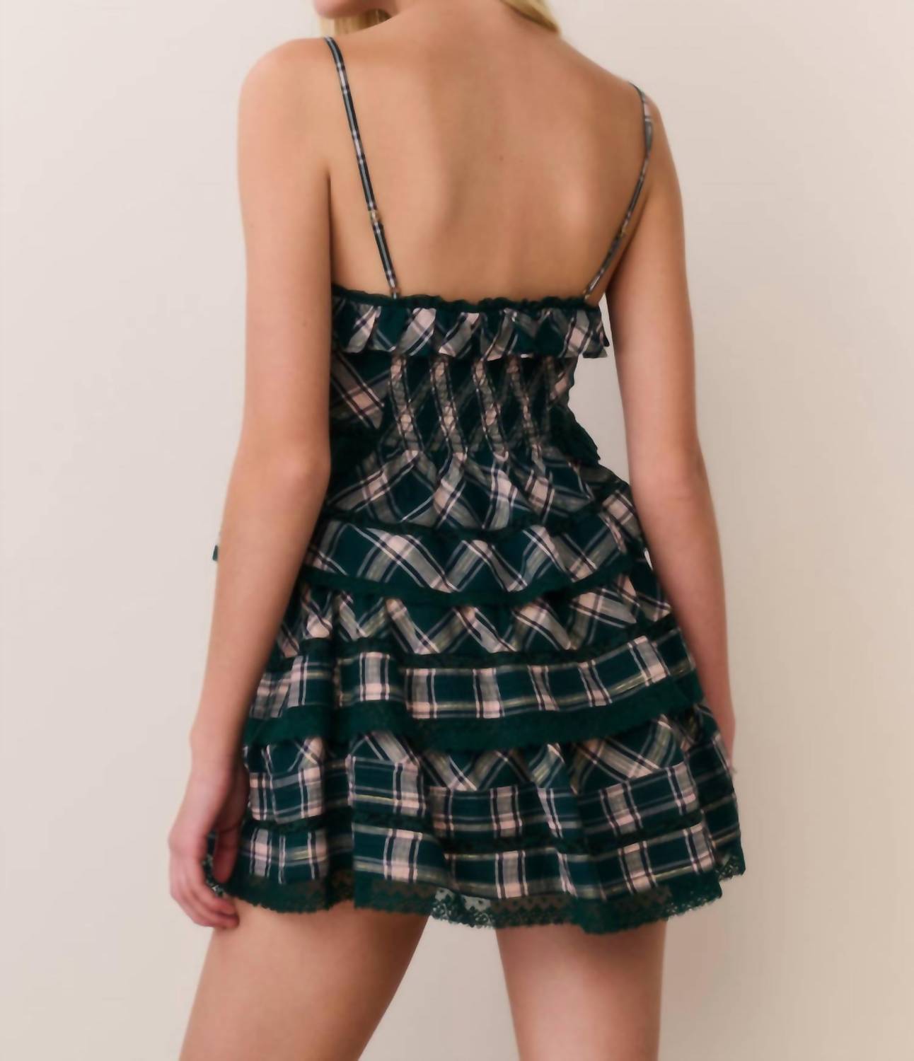 This classic tank top is perfect for layering and cute enough to wear on its own. Celebrate the season with the Sormina Tartan Cotton Top by LoveShackFancy in a charming Mistletoe Kiss plaid. This piece showcases delicate spaghetti straps and is crafted from a yarn-dyed tartan cotton blend with subtle Lurex threads, offering a hint of sparkle. Featuring a peplum silhouette with a nipped waist and a smocked back, it ensures a flattering and flexible fit. Composition: 98% Cotton, 2% Lurex, with a pure cotton lining. Closure: Pull-on. Care: Machine wash cold and lay flat to dry. This women's tank top falls at a garment length of 14 inches.