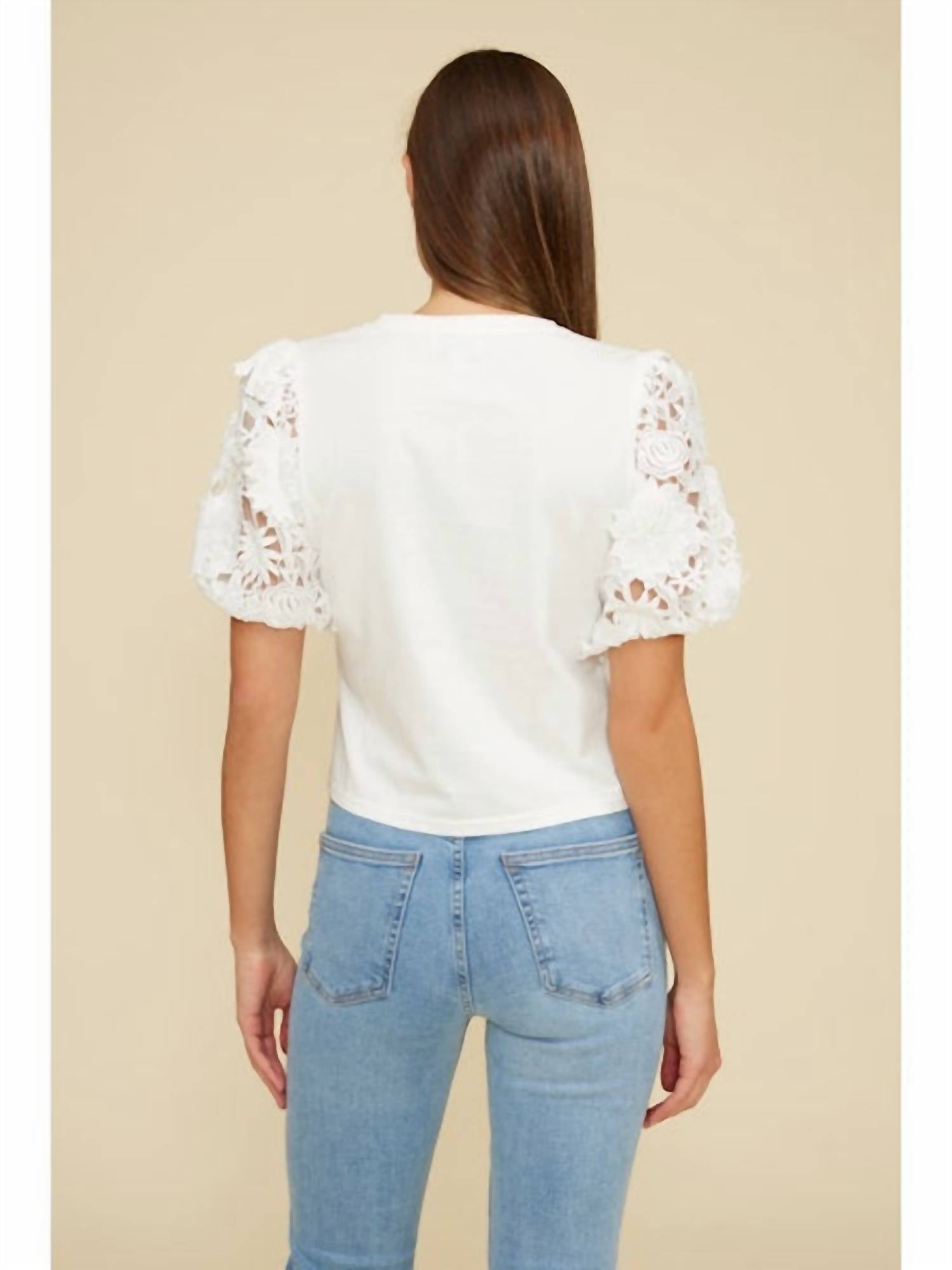 Look no further, you just found your perfect tee! This round-neck top features short lace puff sleeves for a delicate, feminine touch. The bodice is made from soft cotton, while the sleeves are crafted from polyester. Easy to care for, it’s machine washable.