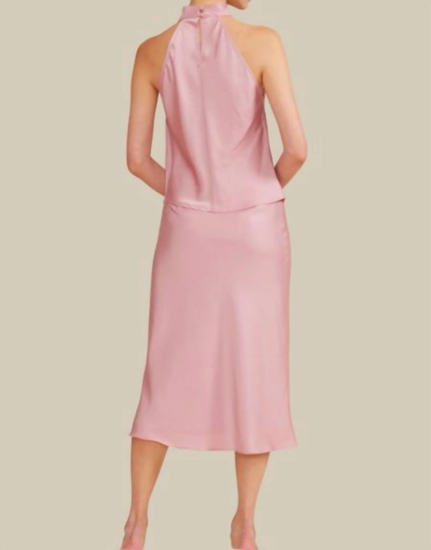 A timeless blouse that will never go out of style. Presenting the Bowie Cowl Neck Top by LUCY PARIS, a stunning addition in a flattering rosy pink that enhances every skin tone. This sleeveless halter top beautifully complements your neckline with its vintage-inspired cowl neck and features a dainty button closure at the nape. Crafted from 100% Polyester, this blouse is perfect for a minimalist look during Easter and spring holiday parties. Model is wearing a size small and this top fits true to size.