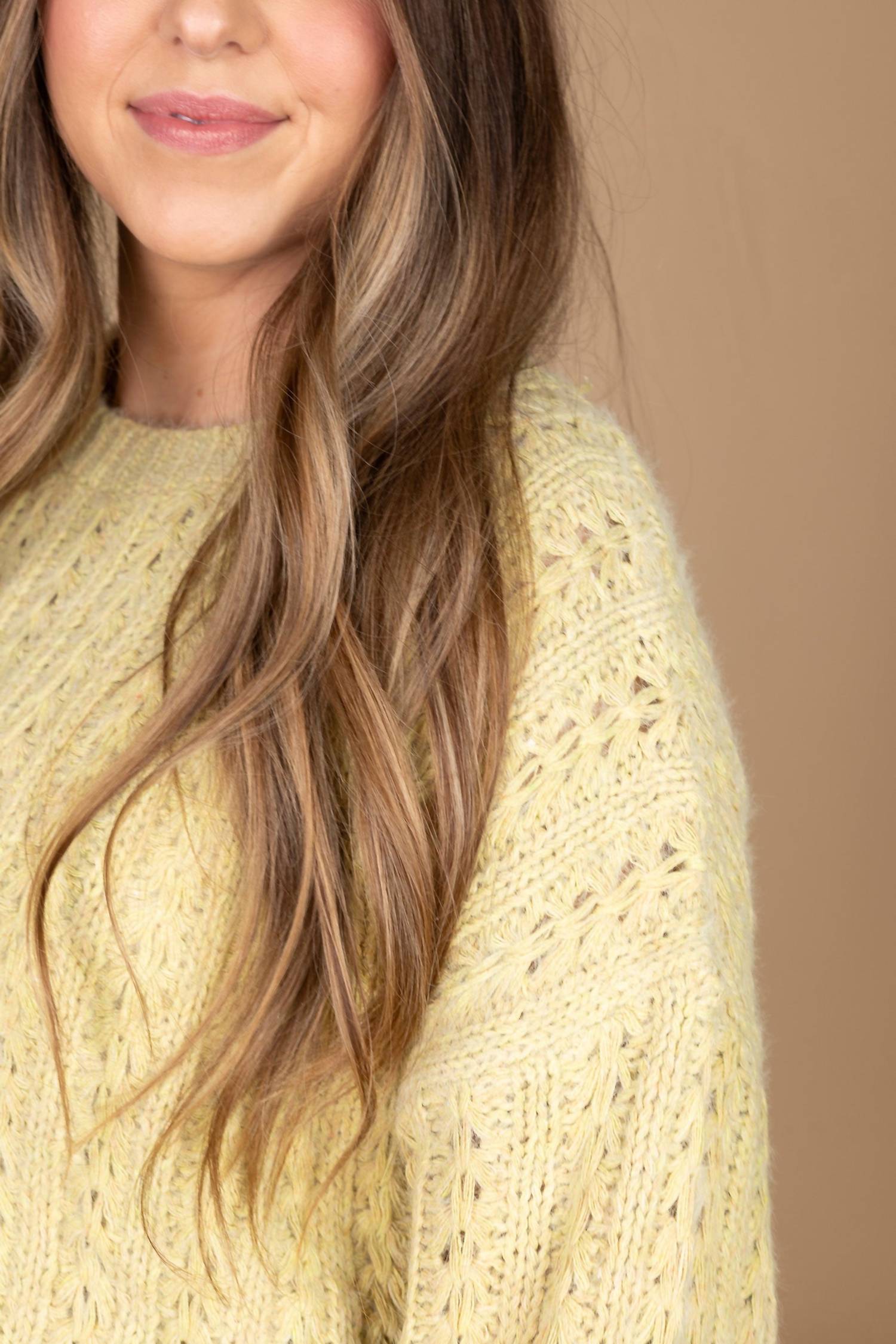 The ultimate go-to sweater, expertly crafted to provide the perfect combination of warmth and style. Its classic design and soft fabric make it a must-have addition to your wardrobe. Introducing the Maisey Detailed Knit Sweater by LUMIERE, a chic choice in a soft light lime green with intricate stitching. This long sleeve, slightly oversized sweater offers a cozy and casual fit that's true to size, ideal for transitioning into spring. Expertly crafted for women with a crewneck style in a textured pattern, it guarantees warmth without sacrificing style. Pull on this piece with ease and maintain its fresh look with simple hand washing and line drying.