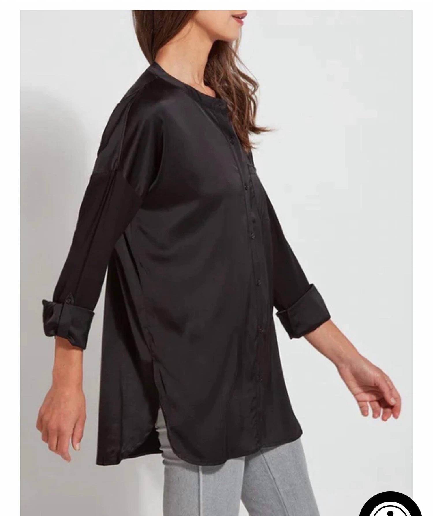 The perfect long sleeve tee that goes with just about anything. Meet the Eco Satin Shirt by Lysse, a stylish long-sleeved blouse perfect for the eco-conscious fashionista. Its composition includes 44% EcoVero™ Viscose, 53% Rayon, and 3% Spandex, providing a unique blend of eco-friendly comfort and elegant style with its 2-way stretch fabric. This oversized, collarless design features roll-up tab sleeves, drop shoulders, and a convenient front pocket, making it ideal for pairing with leggings. Closure: Button closure. Care: Machine wash cold, lay flat to dry, and warm iron to keep it looking pristine.