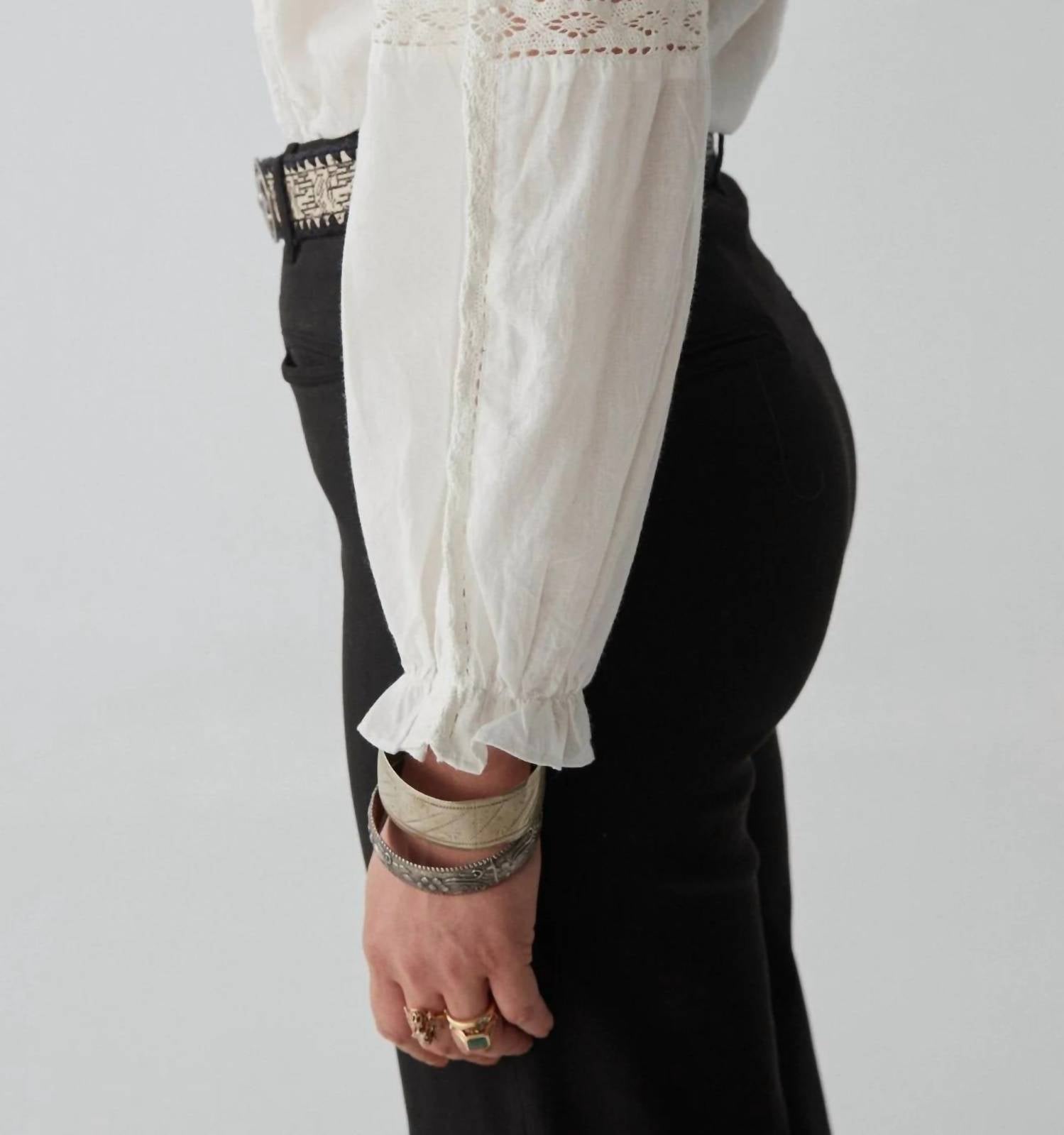 Pair this with your favorite jeans and slides for your next girls night out. Meet the Emmanuelle Blouse by Maison Hotel, a captivating piece in a delicate panna cotta hue perfect for both day and night. Expertly crafted with long sleeves, this blouse showcases intricate cutwork and embroidery that accentuate its tailored silhouette. Made from 100% cotton, it features a classic collar and a front button closure for versatile styling. For care, simply machine wash and lay flat to dry.