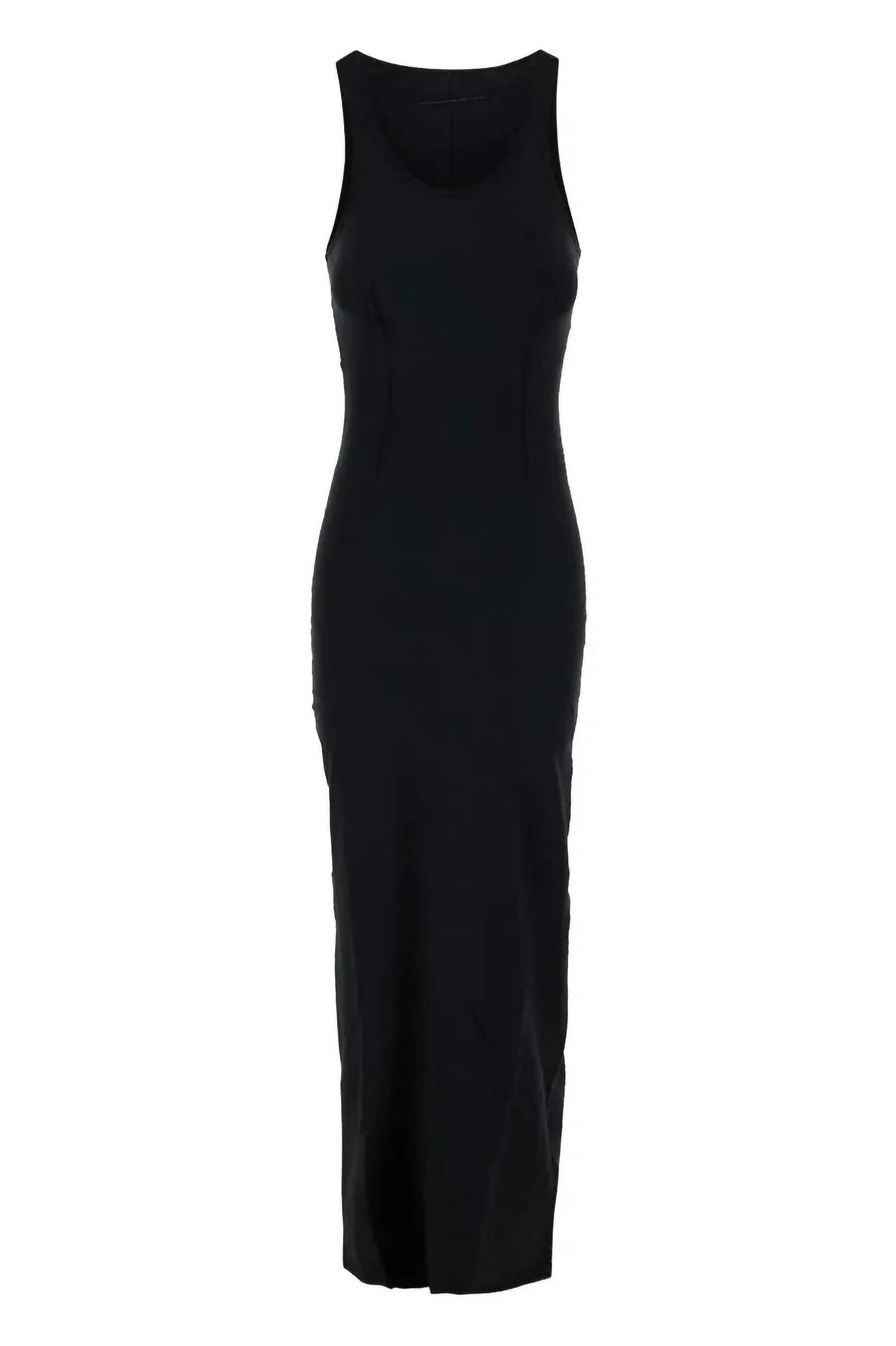 Style this maxi with your favorite statement necklace and sandals for the perfect look. The Maison Margiela Tank Maxi Dress is the embodiment of maximalist style for the contemporary traveler. Crafted from 100% cotton in classic black, this sleeveless sheath dress offers a textured finish and a chic scoop neck. With its pull-on closure and thoughtful details like outside darts for dimension and a high back slit, it ensures ease of movement and flawless fit. Designed for effortless summer dressing, it's machine washable for your convenience.