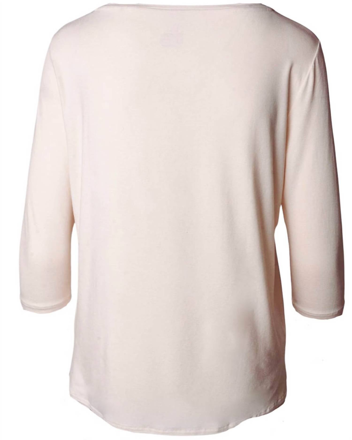 A versatile blouse that works from desk to dinner! The Women's Semi-Relaxed 3/4 Sleeve Boatneck Top by MAJESTIC FILATURES in cream is the epitome of minimalist chic. Designed for a semi-relaxed fit, this blouse features three-quarter sleeves and a sophisticated boatneck silhouette. This solid, pull-on top is perfect for spring engagements, offering a graceful blend of style and comfort.