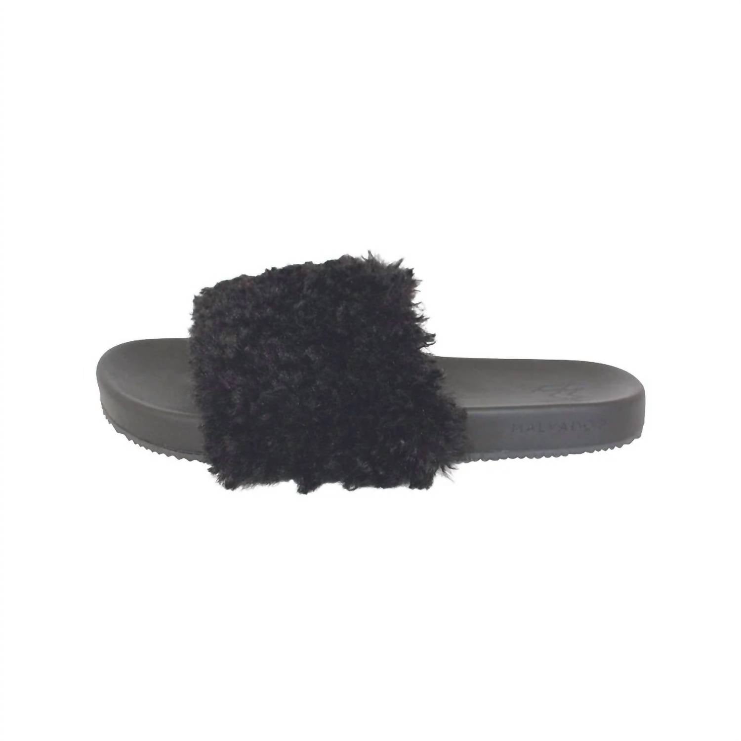 This sandal will take you from brunch to dinner and everything in between. Experience ultimate comfort with the Women's Selena Sandal by Malvados, featuring a fluffy faux fur upper complete with foam under-padding for that cloud-like walking sensation. Perfect for a dinner party or any minimalist-inspired occasion, this sandal pairs beautifully with outfits in Noir and Bramble Sherpa colors. Designed with a flat heel and open toe shape, it ensures a comfortable fit with a medium shoe width. Perfectly suited for spring, it's a stylish addition to any wardrobe.