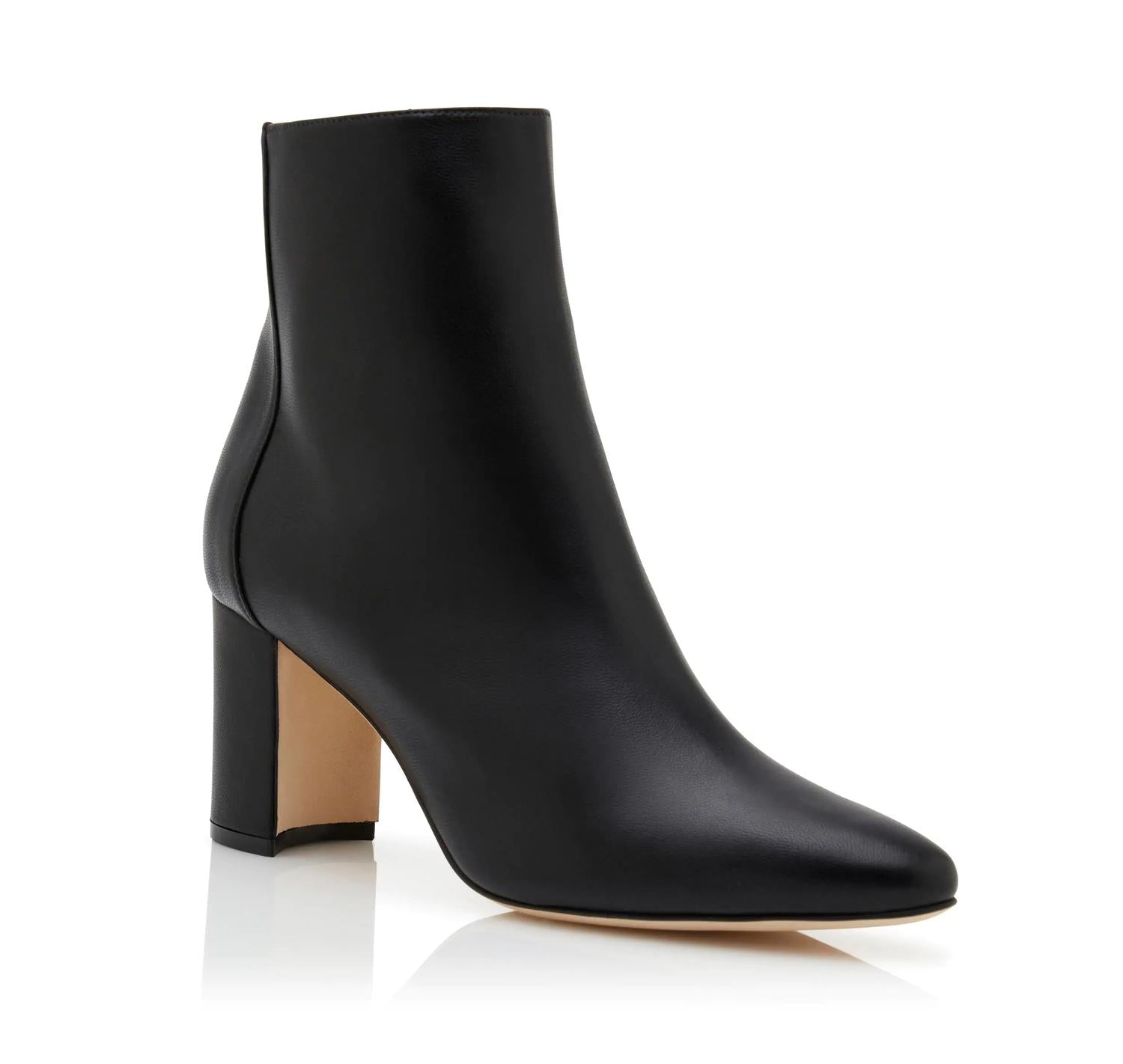 Say hello to the perfect, most versatile boot. The ankle height makes this style easily transition from day to night. Wear them with your favorite skinny jeans and tee for a more laid back look, or pair them with your favorite mini dress and jacket for a night out on the town. Elevate your fall wardrobe with the Women's Rosie Samba Boots from Manolo Blahnik, a perfect blend of style and sophistication. Crafted in Italy, these black ankle boots feature a 2.75-inch block mid heel and a pointed toe, ideal for a concert-ready look. The luxurious composition includes an upper of 100% lamb nappa leather, a sole of 100% calf leather, and a lining of 100% kid leather, all with a side zip closure for easy wear. Experience the classic charm of vintage fashion in these beautifully crafted boots.