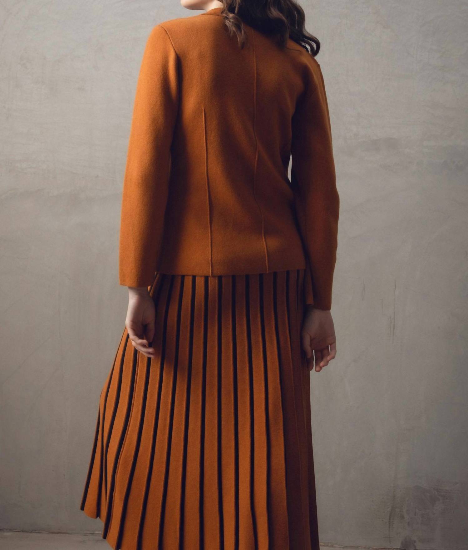 A classic fit that works just as good buttoned as it does left open. Elevate your wardrobe with the Classic One Button Blazer by Marble, a chic addition in a warm rust orange hue. This blazer features long sleeves and is crafted entirely from 100% cozy cotton knit material, perfect for fall dressing. It includes a revere collar and a single button closure for a flattering fit. Care: Machine wash cold and line dry for best results.