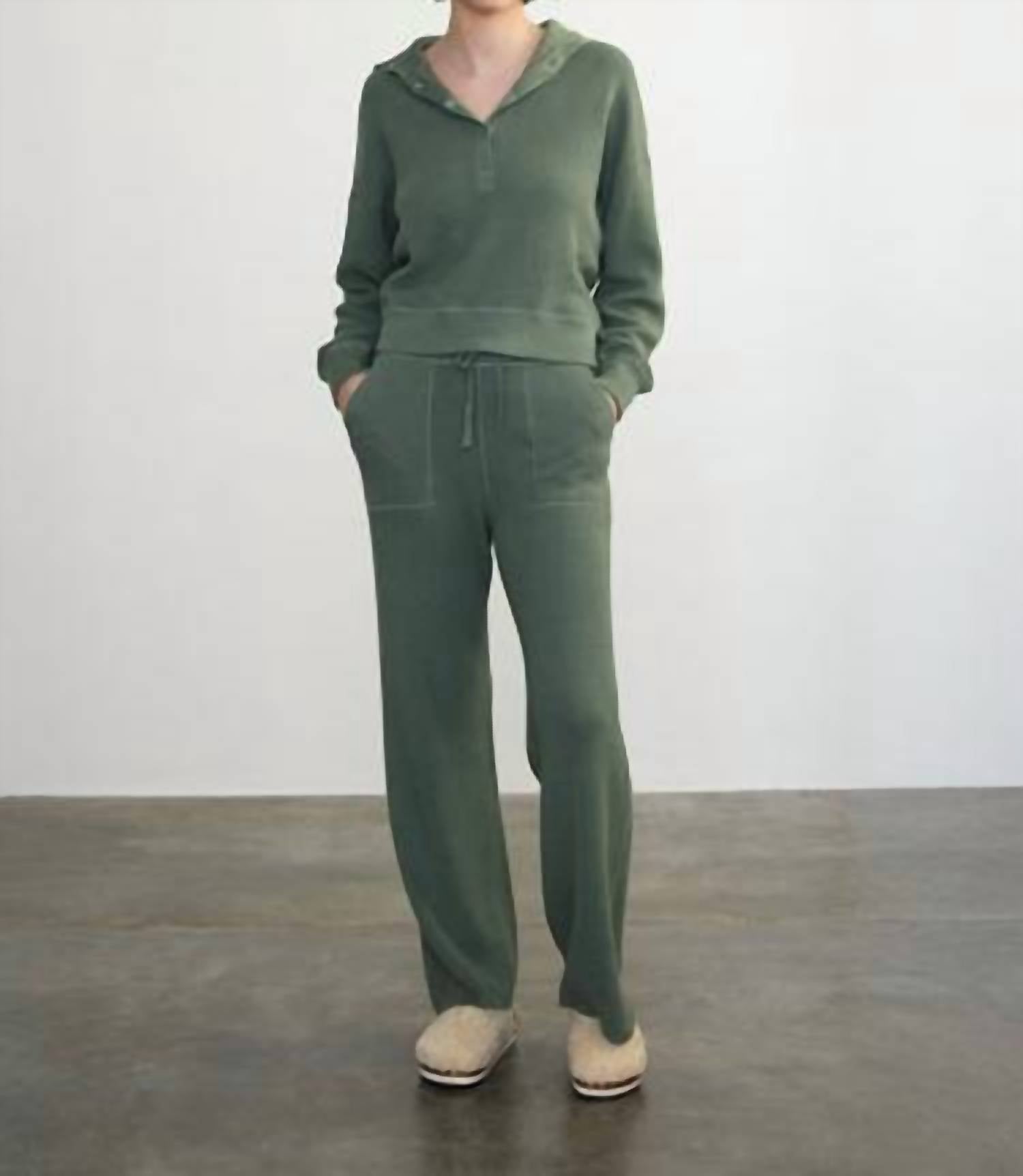 Cooler temps call for layering and we love this adorable sweatshirt for all the obvious reasons. Discover the Henley Wedgy Pullover Sweatshirt by Margaret O'Leary, a refined piece designed for transitional weather in elegant sage. Featuring long sleeves and crafted from 100% cotton, this relaxed fit pullover effortlessly combines style and comfort. The pullover is highlighted by a half-button down placket with snap closure, a tapered waist, and a signature waffle stitch, sitting 22 inches in length with an 18.5-inch chest, measured flat. Care for it with a machine wash on a cold, gentle cycle; tumble dry low, and use a warm iron if needed. Mesh washing bags are recommended to maintain its pristine condition. Model is 5’9” wearing size small.