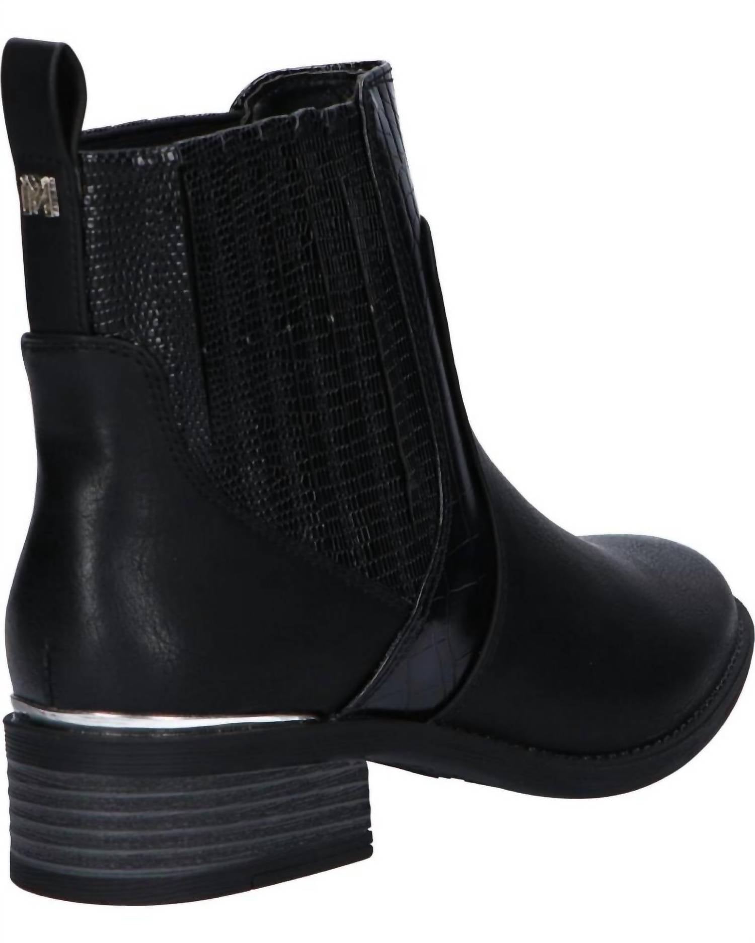 Say hello to the perfect, most versatile boot. The ankle height makes this style easily transition from day to night. Wear them with your favorite skinny jeans and tee for a more laid back look, or pair them with your favorite mini dress and jacket for a night out on the town. Step into style with the MARIAMARE Botines 62819, perfect for adding a fashionable touch to your wardrobe. Crafted from high-quality synthetic faux leather, these black ankle boots feature elastic textile panels for effortless wear and removal. Designed with a 4 cm heel, they provide a subtle lift, complemented by a chic coco texture detail that enhances their unique flair. These stylish booties, complete with a durable rubber sole, are ideal for various casual and vacation settings.