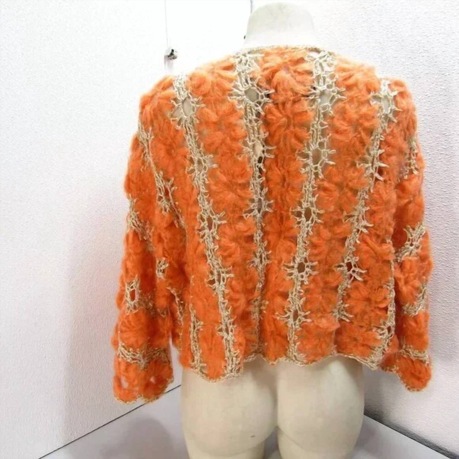 Throw this adorable cardigan over any cami or tank top. Embrace the artisanal charm of the Women's Wool Short Handknit Cardigan by Maridruna, a modern layering piece in a vibrant orange hue. This cardigan features three-quarter sleeves and a striking chunky knit texture combined with a slightly cropped silhouette for a trendsetting 90s look. Made from 100% wool, its open-front design offers effortless wear, and it is designed to provide warmth and a cozy feel. Care involves hand washing and laying flat to dry, ensuring longevity and maintaining its luxurious feel.