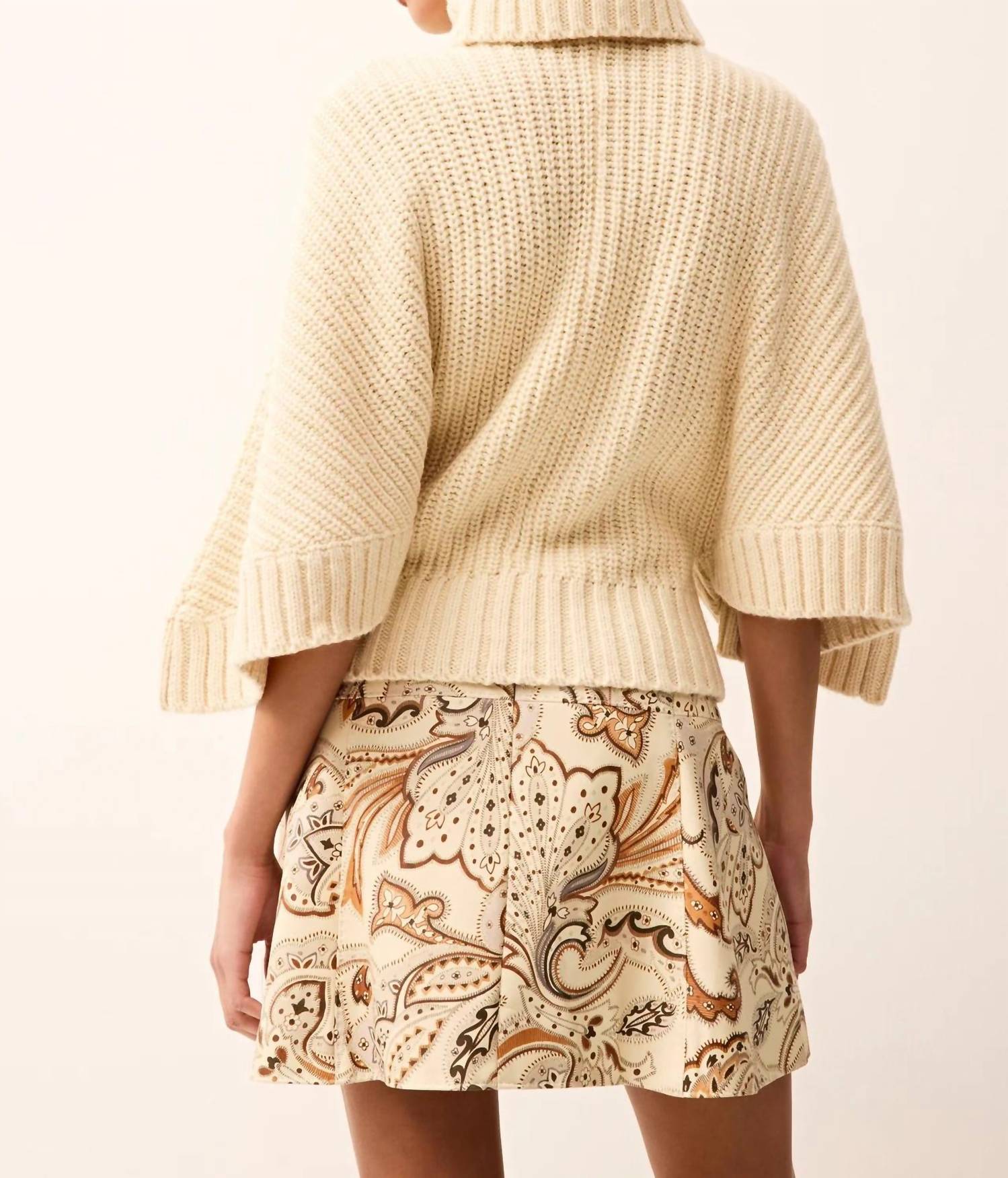 A classic staple that every closet needs. Elevate your style with the Annika Popover Sweater by Marie Oliver, a cozy blend of luxury and comfort in ivory. Featuring chic batwing three-quarter sleeves and a chunky turtleneck, this textured knit design offers a slip-on silhouette perfect for fall travel or Thanksgiving gatherings. Composition: 60% Cotton, 40% Acrylic. Care: Hand wash cold separately, do not bleach, reshape and lay flat to dry, cool iron if needed or dry clean.