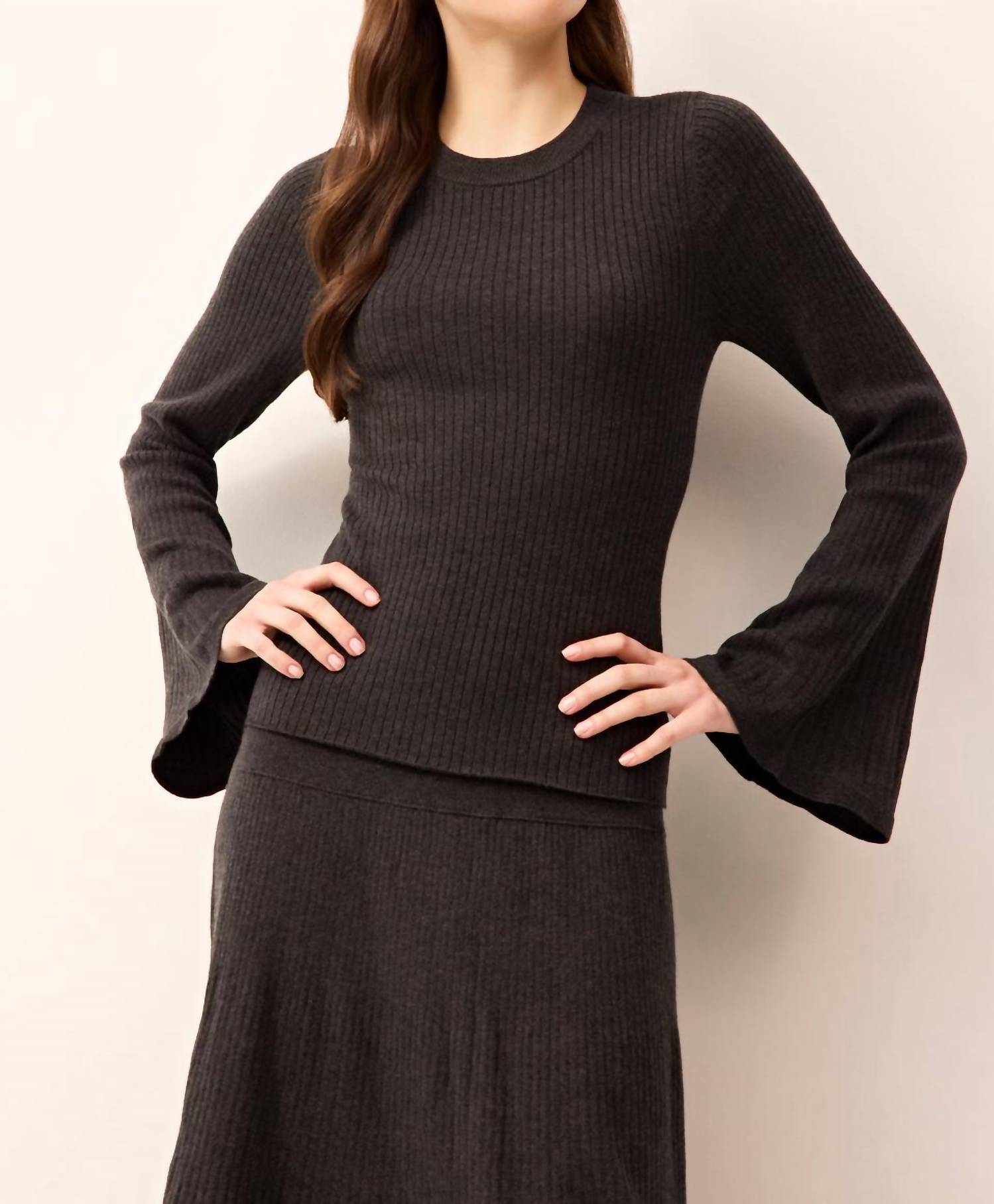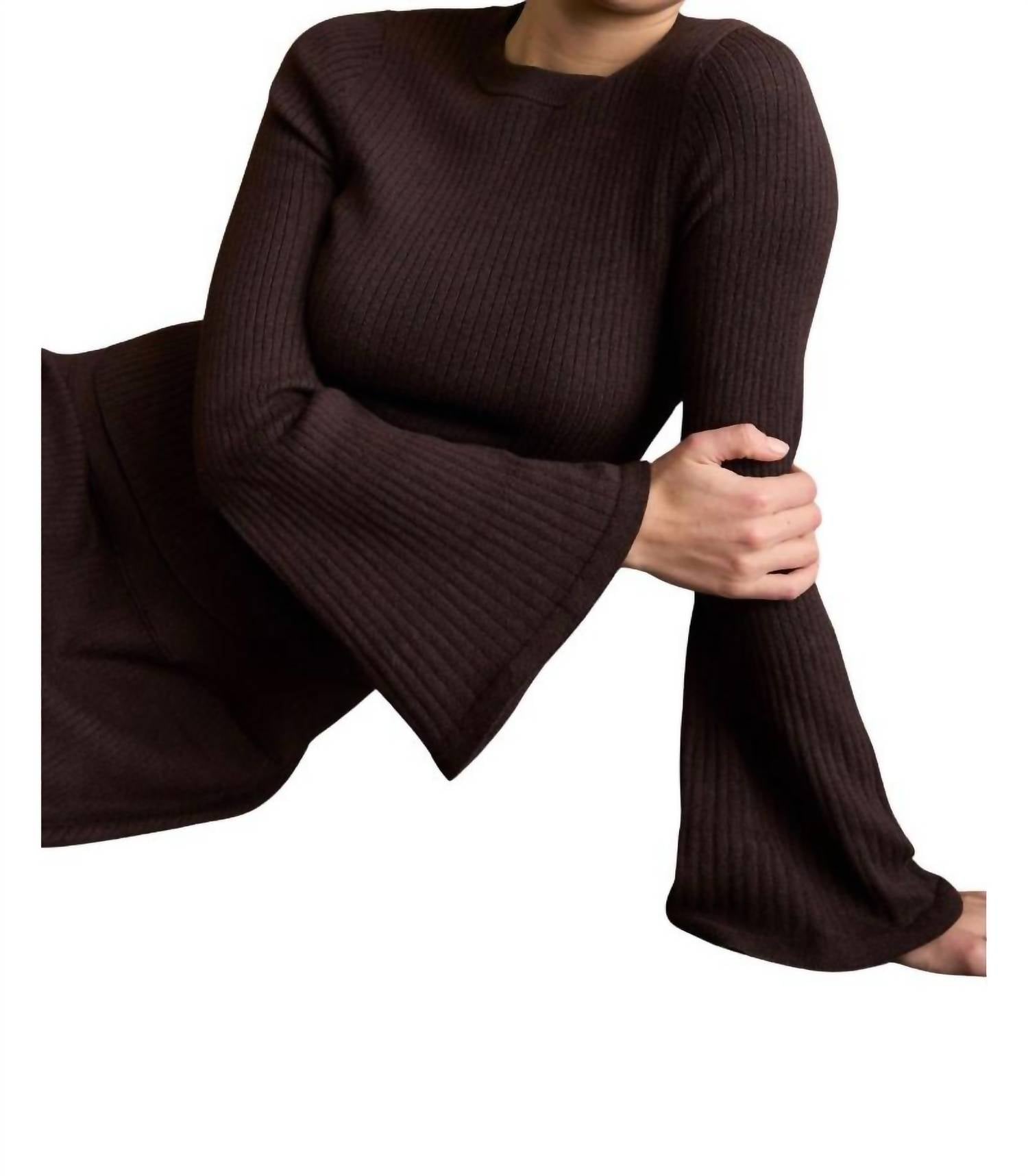 Pair this with your favorite jeans and slides for your next girls night out. Introducing the Carrey Long Sleeve Top by Marie Oliver, a perfect blend of comfort and elegance. Crafted from 60% Cotton, 30% Nylon, and 10% Merino Wool, this cacao-hued blouse features a chic high neckline and stylish bell sleeves. Its pull-on style and textured pattern make it an excellent choice for travel or Thanksgiving occasions. Care for this piece is simple: hand wash and lay flat to dry.