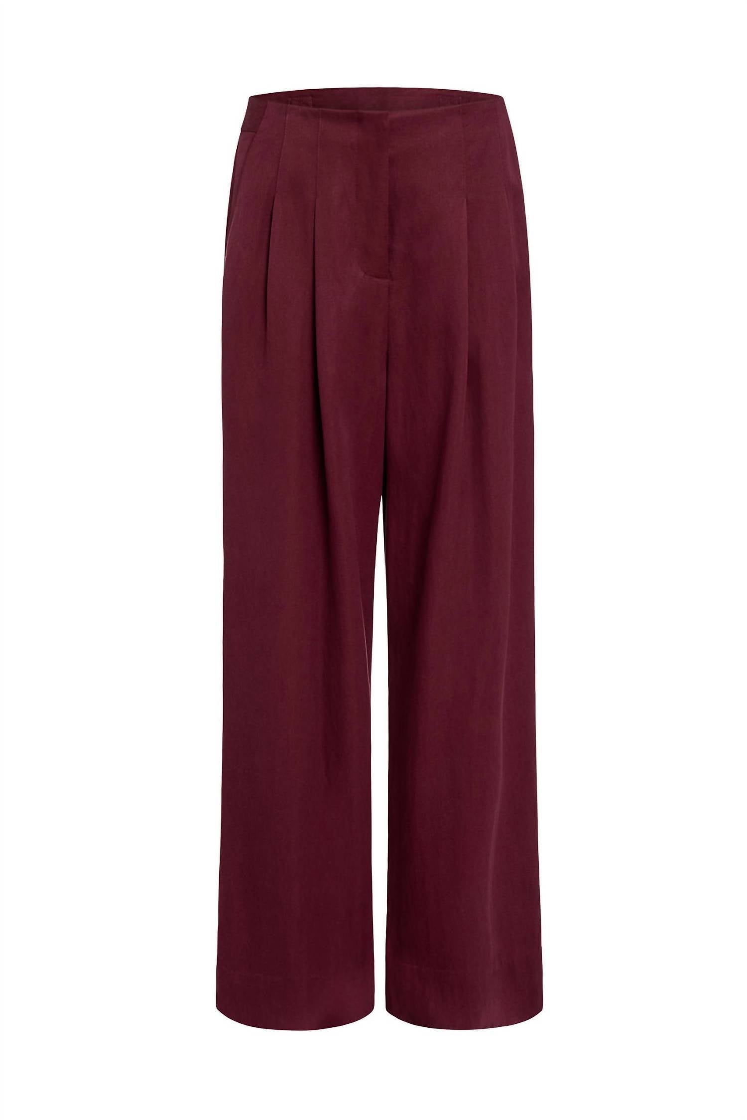 Marie Oliver presents the Macbee Wide Leg Pants in a stunning port color, perfect for adding a touch of sophistication to your summer wardrobe. Crafted from 94% Lyocell and 6% Polyamide, these pants boast a relaxed fit and a solid pattern. Designed with a convenient zip closure and practical pockets, they are easily styled for streetwear and holiday parties alike. Care instructions include hand washing and laying flat to dry for optimal longevity.