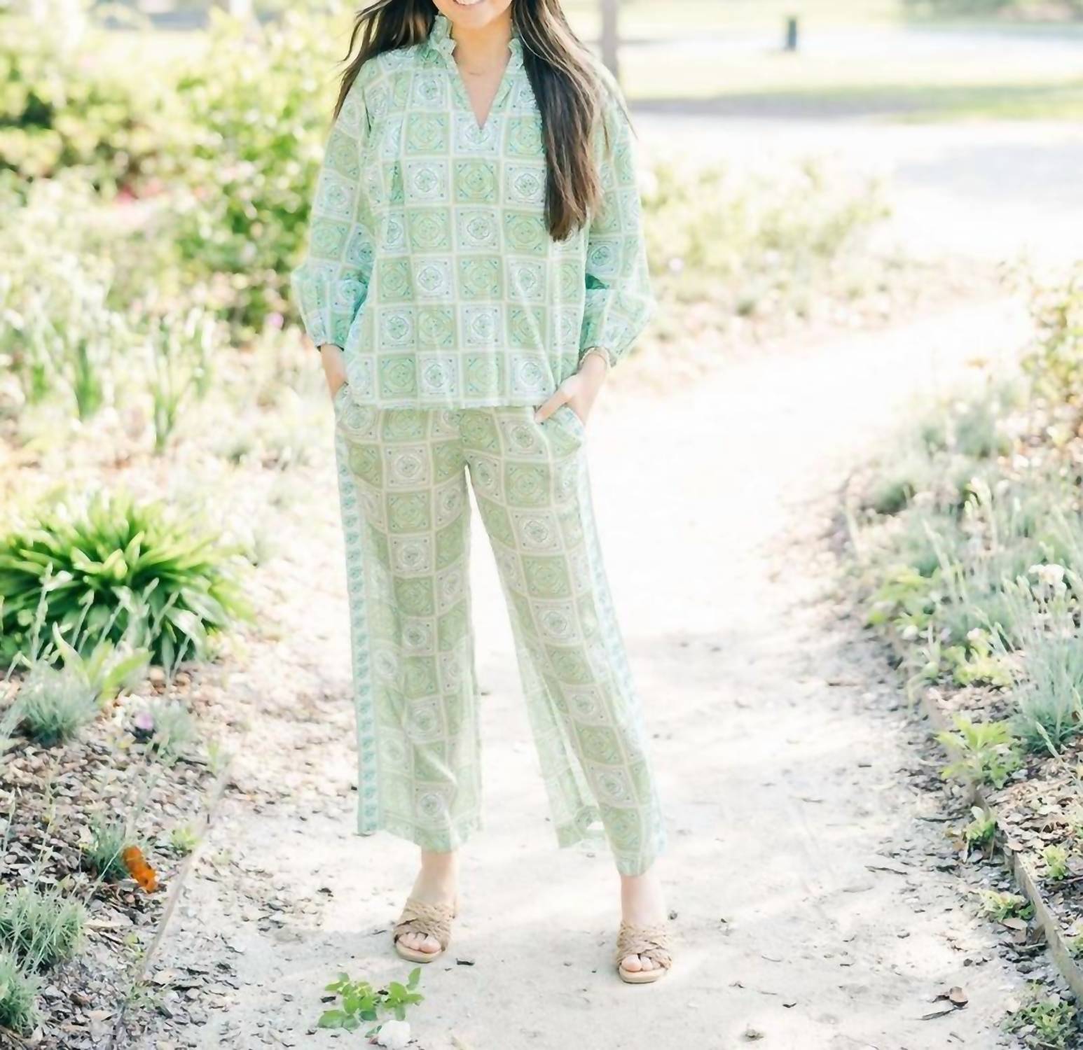 Pair this with your favorite jeans and slides for your next girls night out. This Ciella Blouse features a pull over design, elasticized cuffs, a ruffled split neck, tie closures, and long balloon sleeves. Pair with the Ciella Short for the cutest warm weather outfit a relaxed fit. Hand-crafted by artisans in Jaipur, India 100% Cotton Poplin Model is wearing a size XS