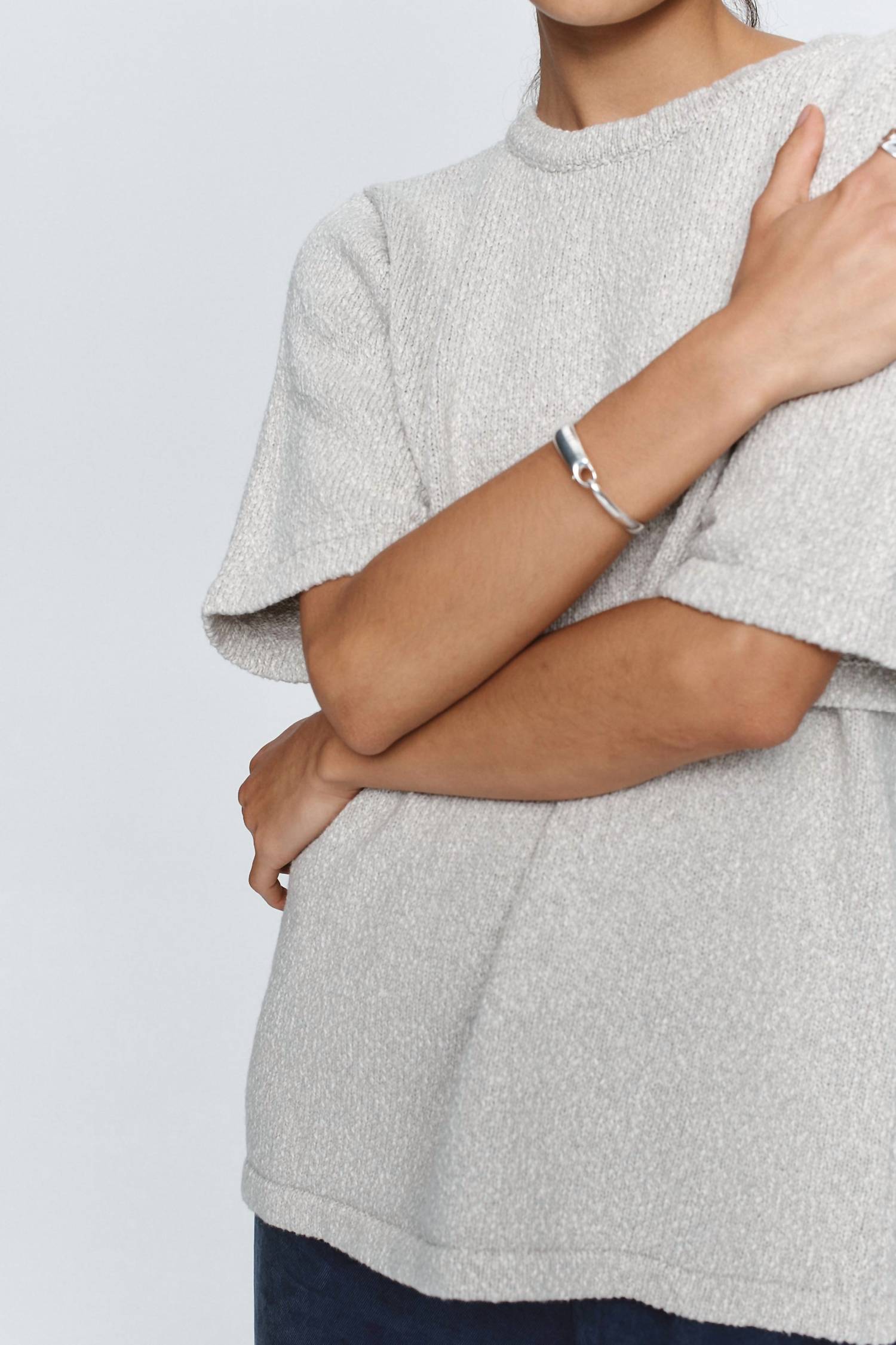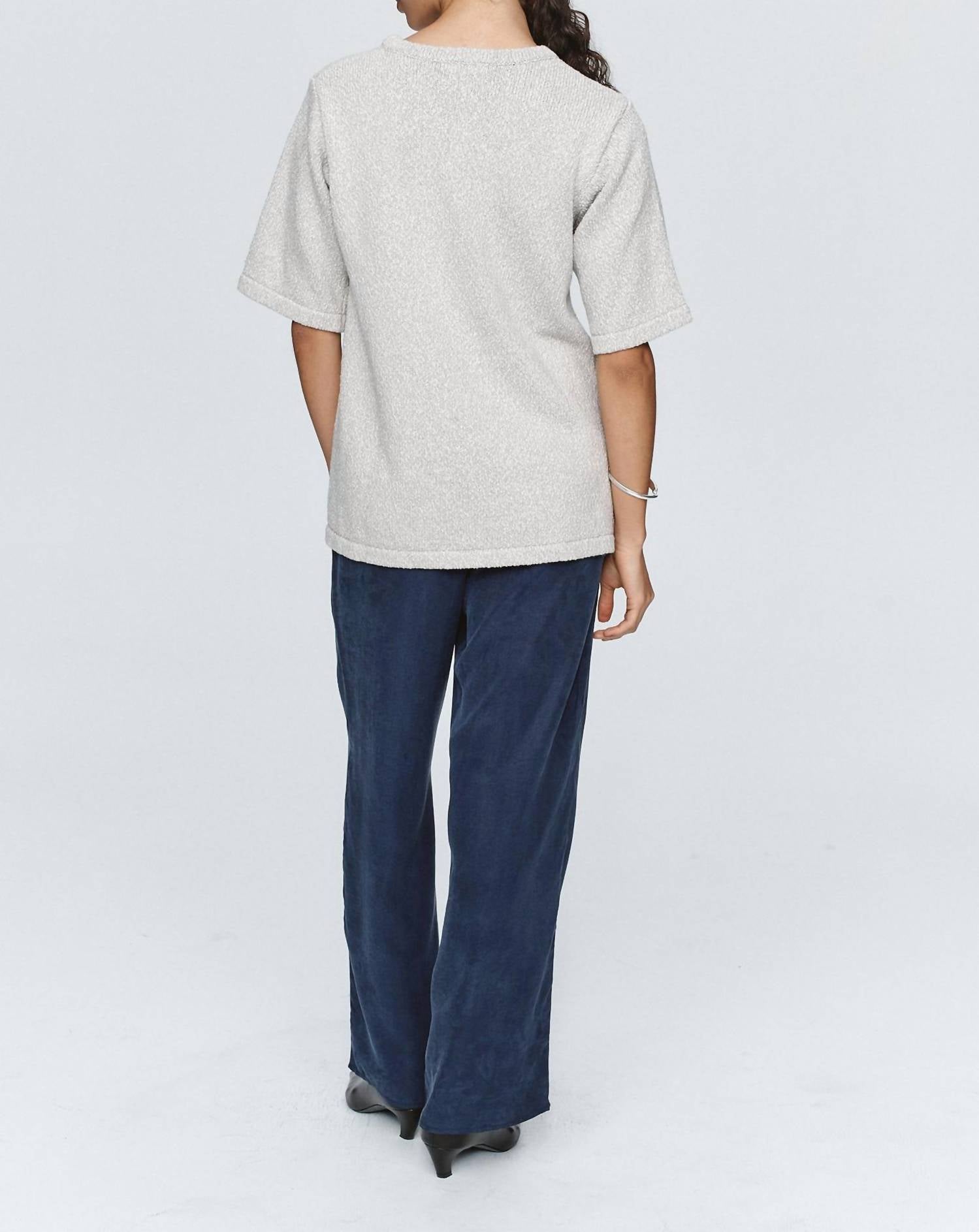 The short sleeve tee you'll want in every color. Elevate your minimalist wardrobe with the Kenna Knit Tee by Marle, a timeless piece perfect for spring occasions. This women's tee in grey marle is crafted from 100% cotton, offering a textured, oversized silhouette with elongated short sleeves. Featuring a crewneck and a pull-on design for effortless styling. Care instructions include a gentle cold machine wash, laying flat in the shade to dry, and a cool iron on reverse.