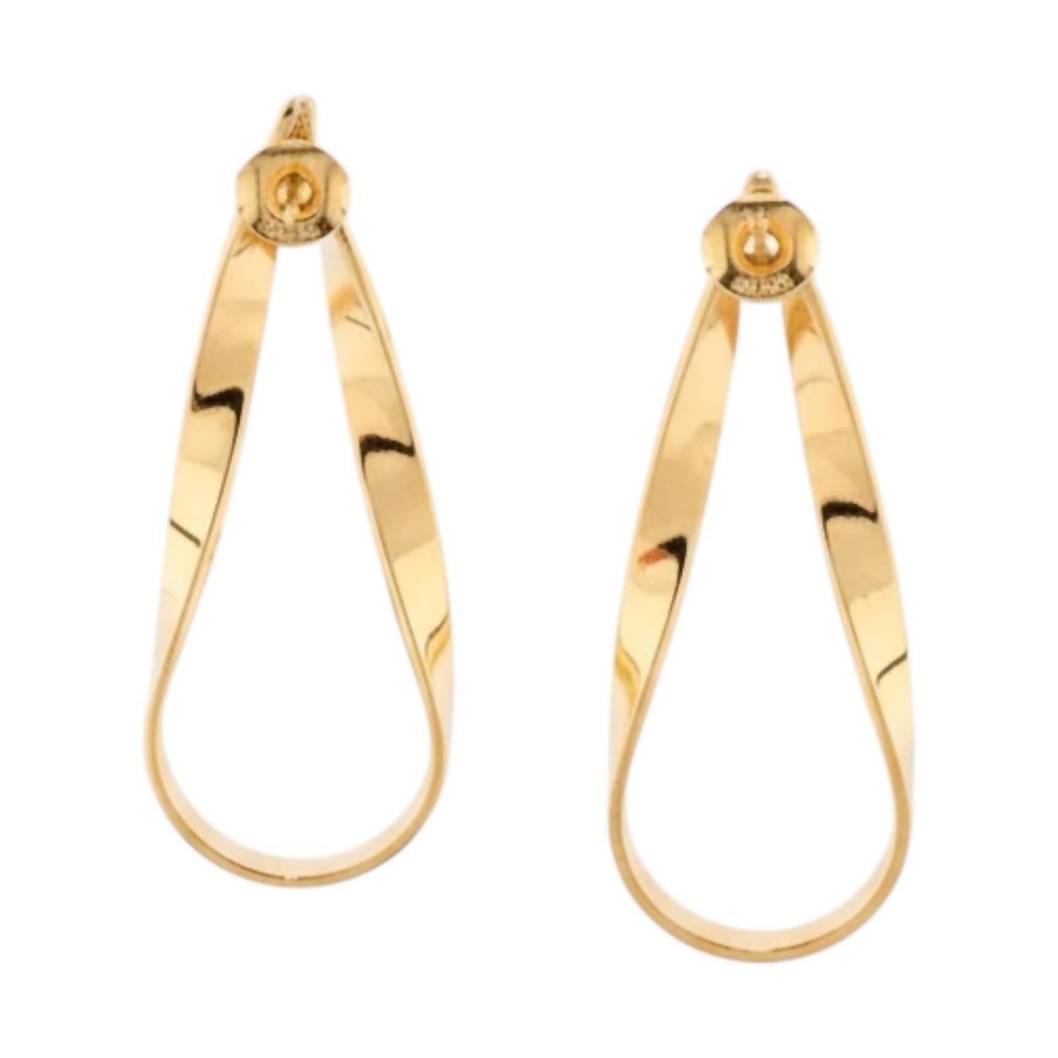 eye-catching earrings for every occasion. Elevate your look with the Women's Abstract Twisted Teardrop Earring by Marlyn Schiff, a stunning piece in gold. Featuring a unique abstract twist design, these earrings measure 2 inches in length and 0.75 inches in width. Crafted from fine gold plating, they add a touch of elegance to any outfit. Closure: Post backing.