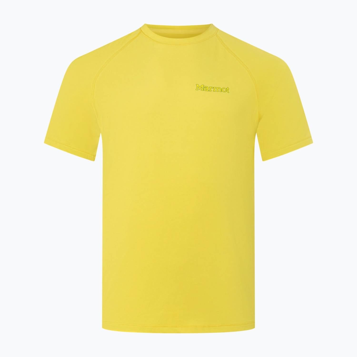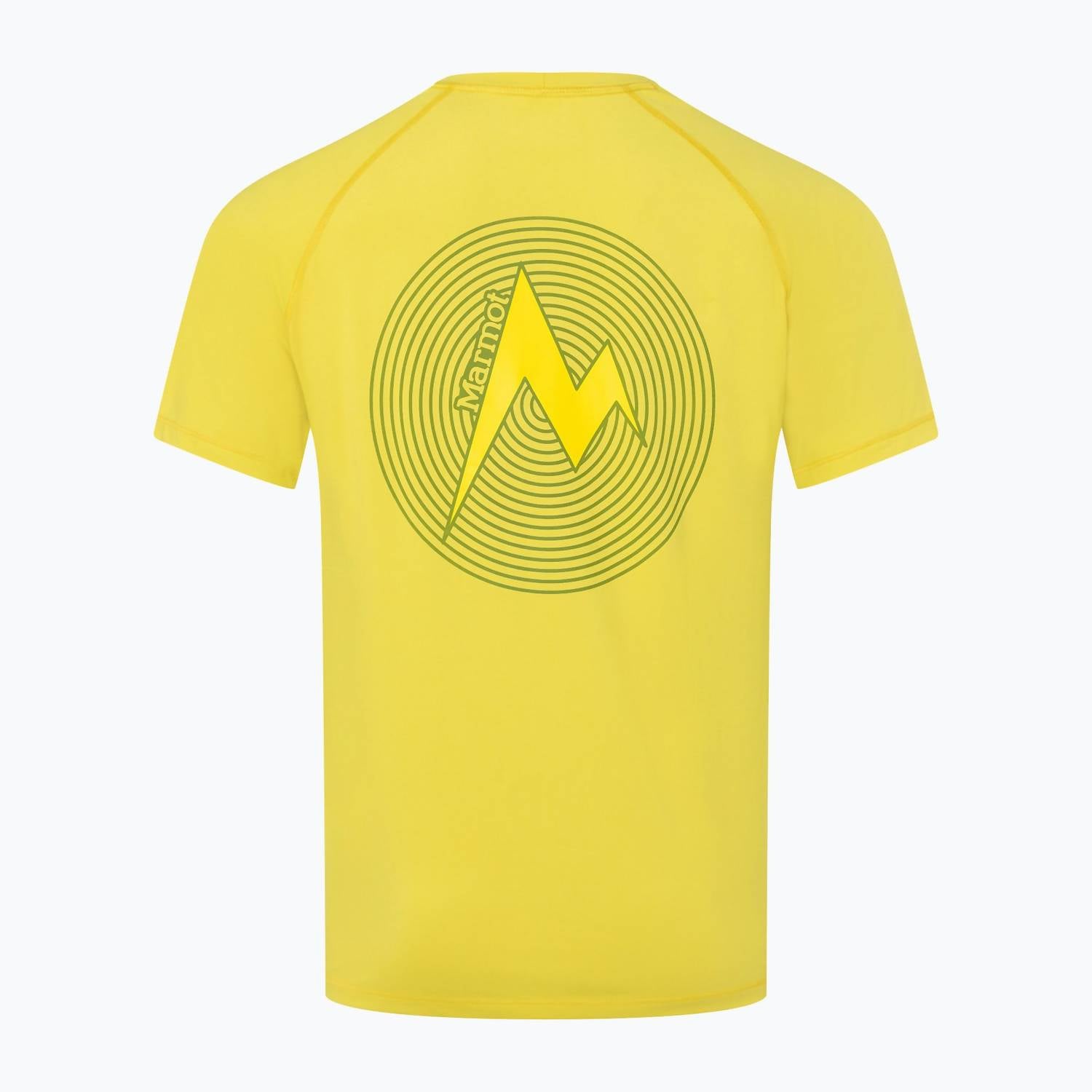 Introducing the Men's Windridge Graphic Short Sleeve Tee by MARMOT, a perfect blend of comfort and sustainability for any adventure. Crafted from polyester and elastane, this short sleeve tee offers flexibility while promoting eco-friendliness with Repreve™ technology. Designed in a vibrant yellow graphic pattern, it features a classic crew neckline and a pull-on closure for effortless wear. Care instructions include hand wash only, ensuring long-lasting durability.