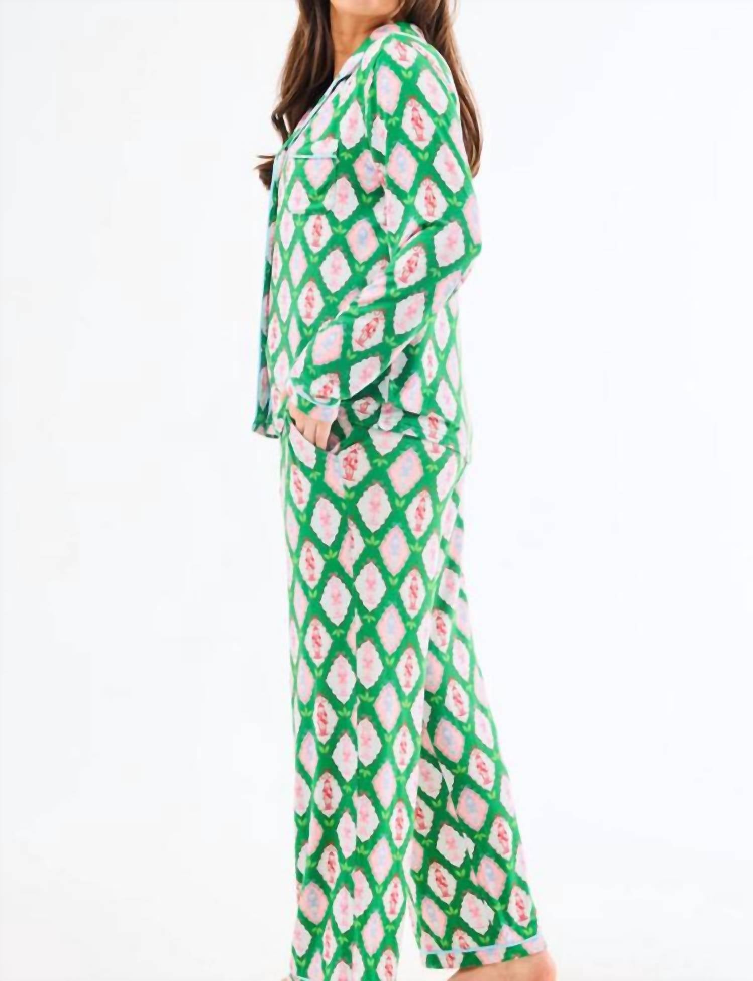 A set so cute you'll never want to take it off. Designed to look good while lounging, this little number is the perfect outfit for hanging at home in style. Introducing the Christmas Calvary Pajama Set by Mary Square, the perfect women’s loungewear for the festive season. This green sleepwear ensemble features a long sleeve button-front top with a classic collar and matching pants with an elastic waistband and adjustable drawstring. Crafted from LuxBlend fabric for exceptional softness, it incorporates stylish contrast piping in its design. Care for this delightful graphic set is simple with machine wash instructions. Ideal for embracing comfort and holiday cheer at winter parties.