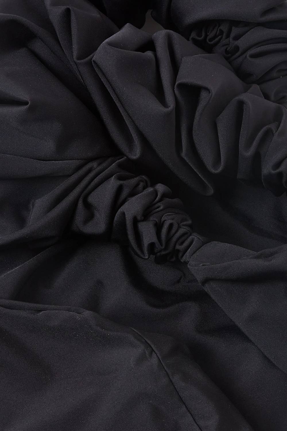 This one piece fits like a glove and covers all the right areas. Introducing the Denise One Piece Swimsuit by Maygel Coronel, a chic addition to your beach day essentials. This swimsuit features puffy ruffle shoulders offering medium coverage for a stylish yet comfortable fit. Composition: 78% Polyamide, 22% Elastane. Care: Hand wash and lay flat to dry. Ideal for the summer season, its monochrome black design makes it a timeless choice.