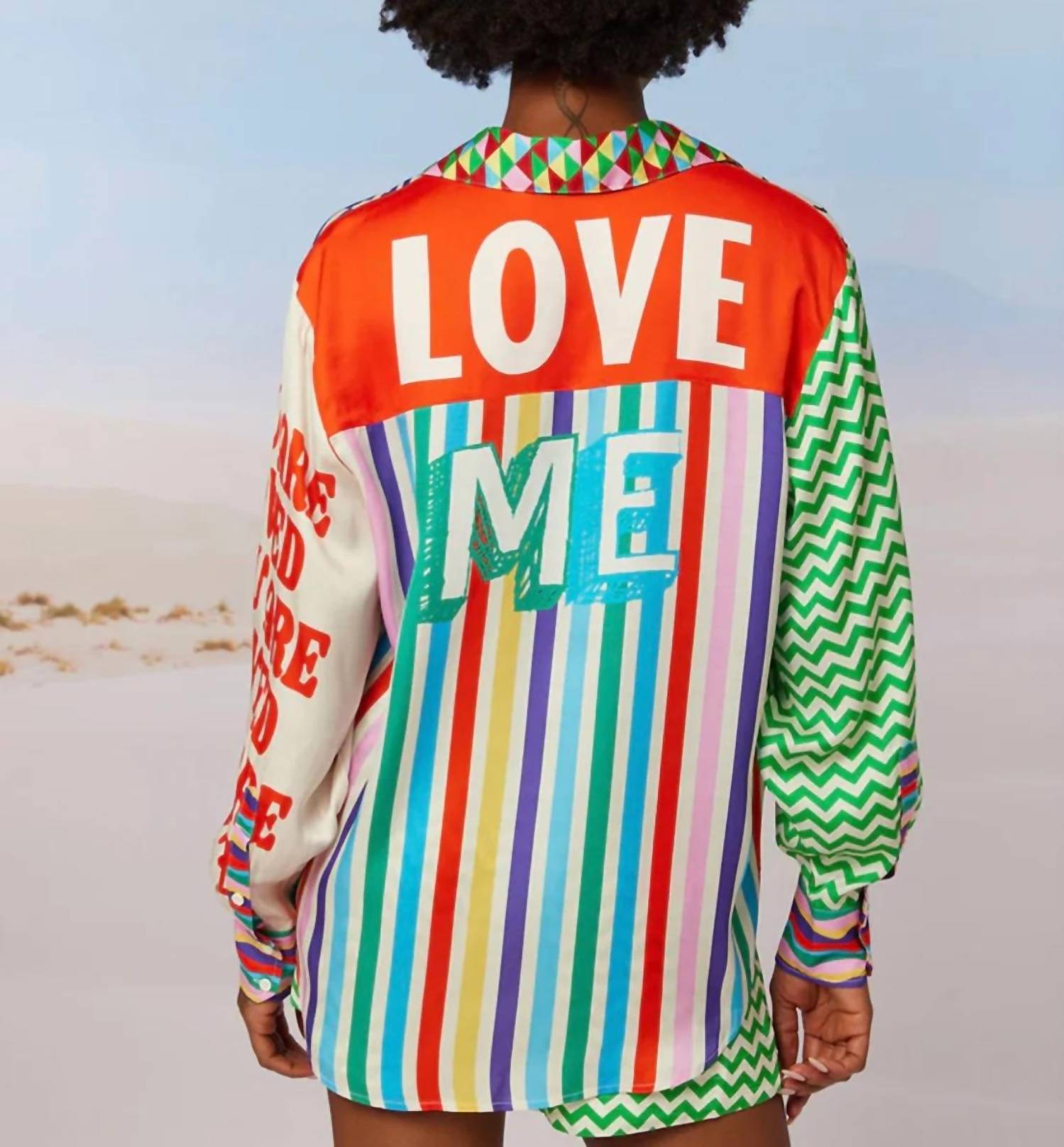 This button down shirt is comfortable yet polished. Discover the Eveylyn Shirt by Me369, a stylish addition to your wardrobe with a delightful "It Comes In Waves" tattoo print. This patterned, long-sleeve button-down shirt is perfect for creating a boho chic look with matching pants for a vintage-inspired ensemble. Crafted with 100% Viscose, this shirt combines comfort and elegance, suitable for a summer vacation. Designed for women, it features a practical button closure and a chic collar neckline.