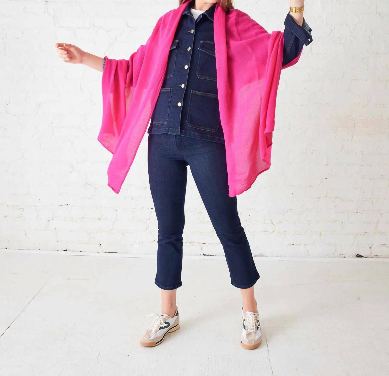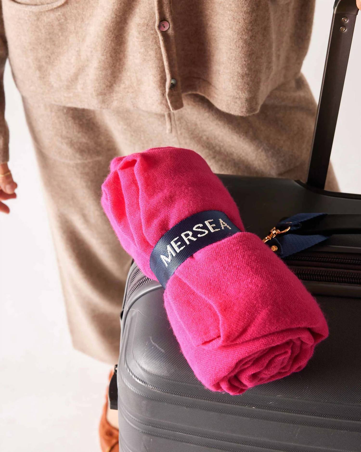 The perfect accessory to complete any look. Meet the GoLightly Travel Scarf by MERSEA in a rich pink hue, a stylish companion for any adventure. Crafted from 100% Acrylic, this scarf offers a soft touch and versatile wear, whether draped as a scarf or a shawl. With dimensions of 30” in width and 81” in length, it's designed for the seasoned traveler, complete with a handy wristlet for easy attachment to your luggage. Care for this elegant piece by hand washing it cold with similar colors and laying it flat to dry.
