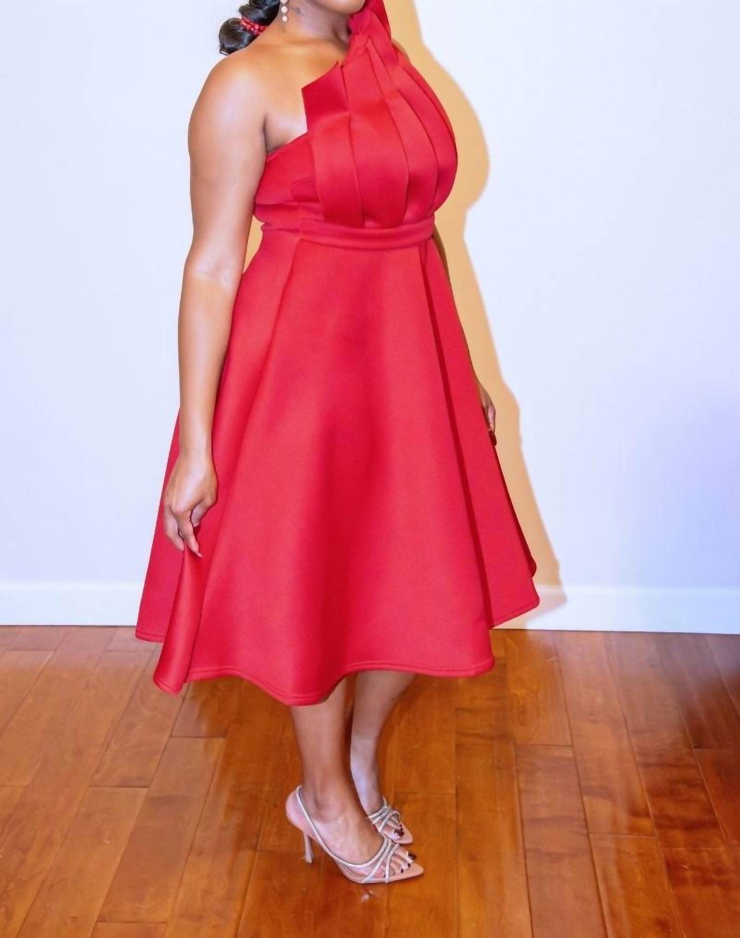 A midi dress so versatile, your options for wearing it are endless. Elevate your evening attire with the Metamorphosis Patchwork One-Shoulder Evening Party Midi Dress, a stunning staple in vibrant red. This sleeveless dress crafted from polyester boasts an elegant one-shoulder neckline with a chic patchwork design and layered ruffle detailing for added dimension. Made for special occasions such as holiday parties and spring gatherings, it features a classic A-line silhouette. Closure: Zip.
