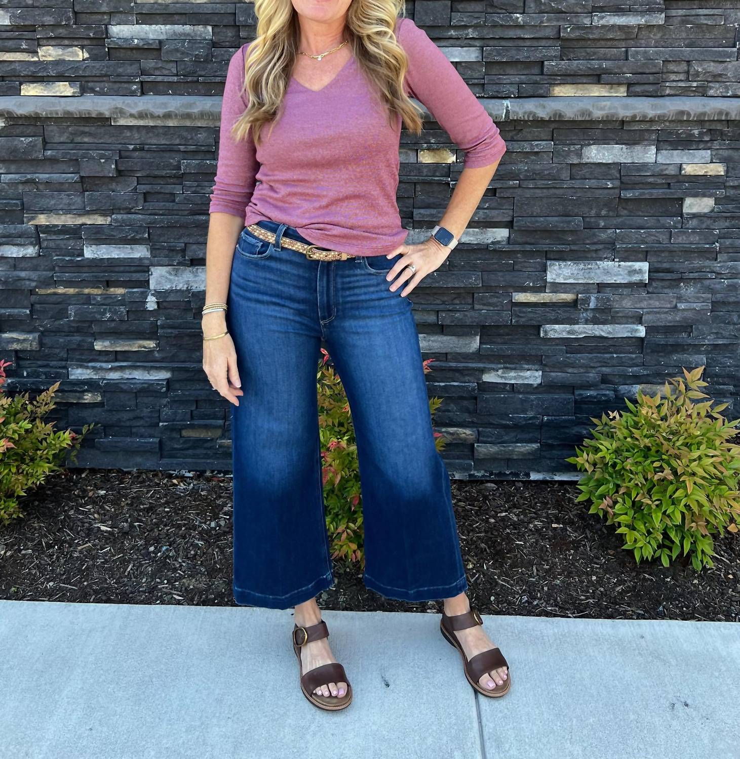 Great fit, cute design, soft fabric. You'll love everything about this long sleeve tee. Introducing the Angelina V-neck by Michael Stars, a chic day-to-night top in a striking Muse hue. This fitted piece features three-quarter sleeves and a delicate V-neckline, crafted from a sophisticated cotton blend with 58% cotton and 42% nylon for a subtle sheen. The front is double-layered, offering a more substantial feel without sacrificing style. Care for this elegant piece with machine wash cold and lay it flat to dry.