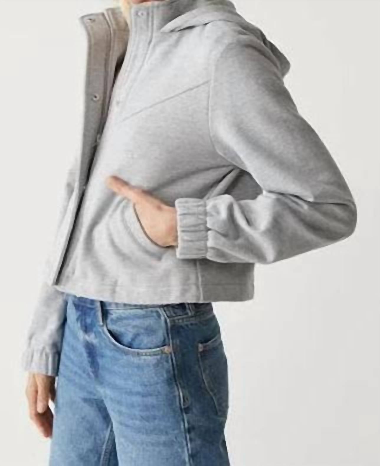 A casual yet cool jacket that every closset needs. Embrace modern style with the Mason Hooded Crop Jacket by Michael Stars, a perfect piece for travel and streetwear occasions. Designed in heather grey, this casual jacket showcases long sleeves and a cropped length for a contemporary look. Crafted from 100% cotton, it offers comfort with a button closure and a hooded neckline, perfect for fall adventures. Easy to maintain with machine wash instructions, this unlined jacket is sure to be your go-to classic this season.