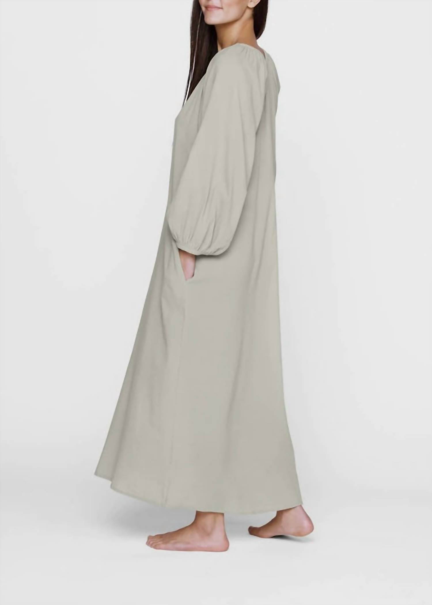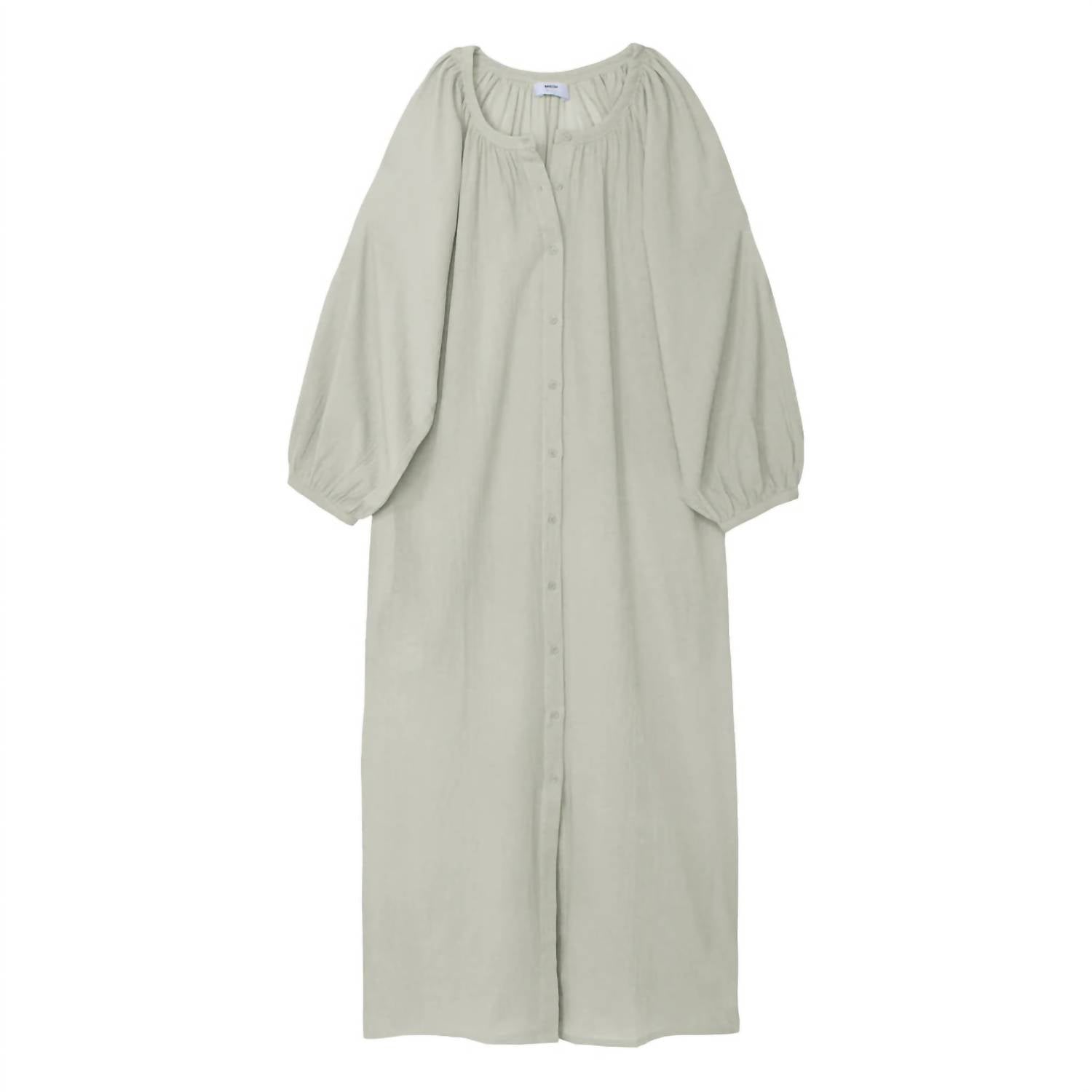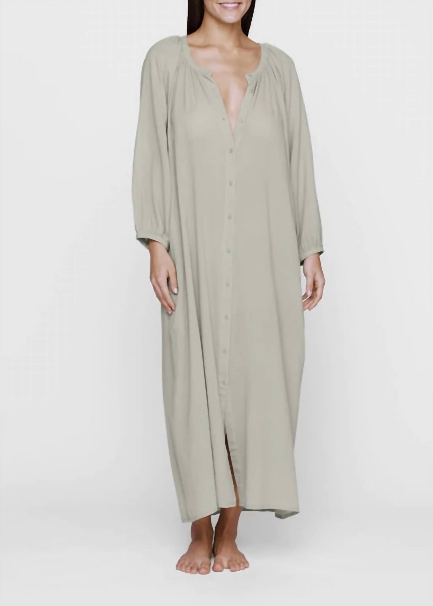 A maxi dress that is just as cute as it is comfortable. Discover the Maracas Dress by MIKOH, a must-have for your travel wardrobe, perfect for vacation occasions. This sophisticated maxi dress in a gravel hue features an oversized fit with long sleeves and a scoopneck, ensuring a stylish and comfortable look. Made from 100% Cotton in Indonesia, it comes with a convenient button closure. For care, it is machine washable and should be laid flat to dry, with light steaming as needed.
