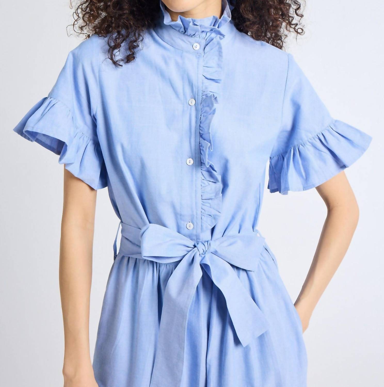 Style this maxi with your favorite statement necklace and sandals for the perfect look. Introducing the Women's Victoria Dress by MILLE, a stunning addition to your spring wardrobe in Blue Oxford. This solid, minimalist maxi dress features a classic collar and A-line silhouette, perfect for effortless elegance. Thoughtfully designed with convenient pockets and a button closure. Ideal for versatile styling throughout the season.