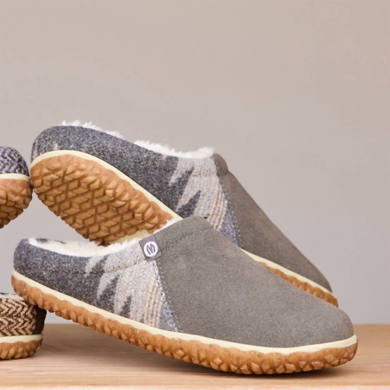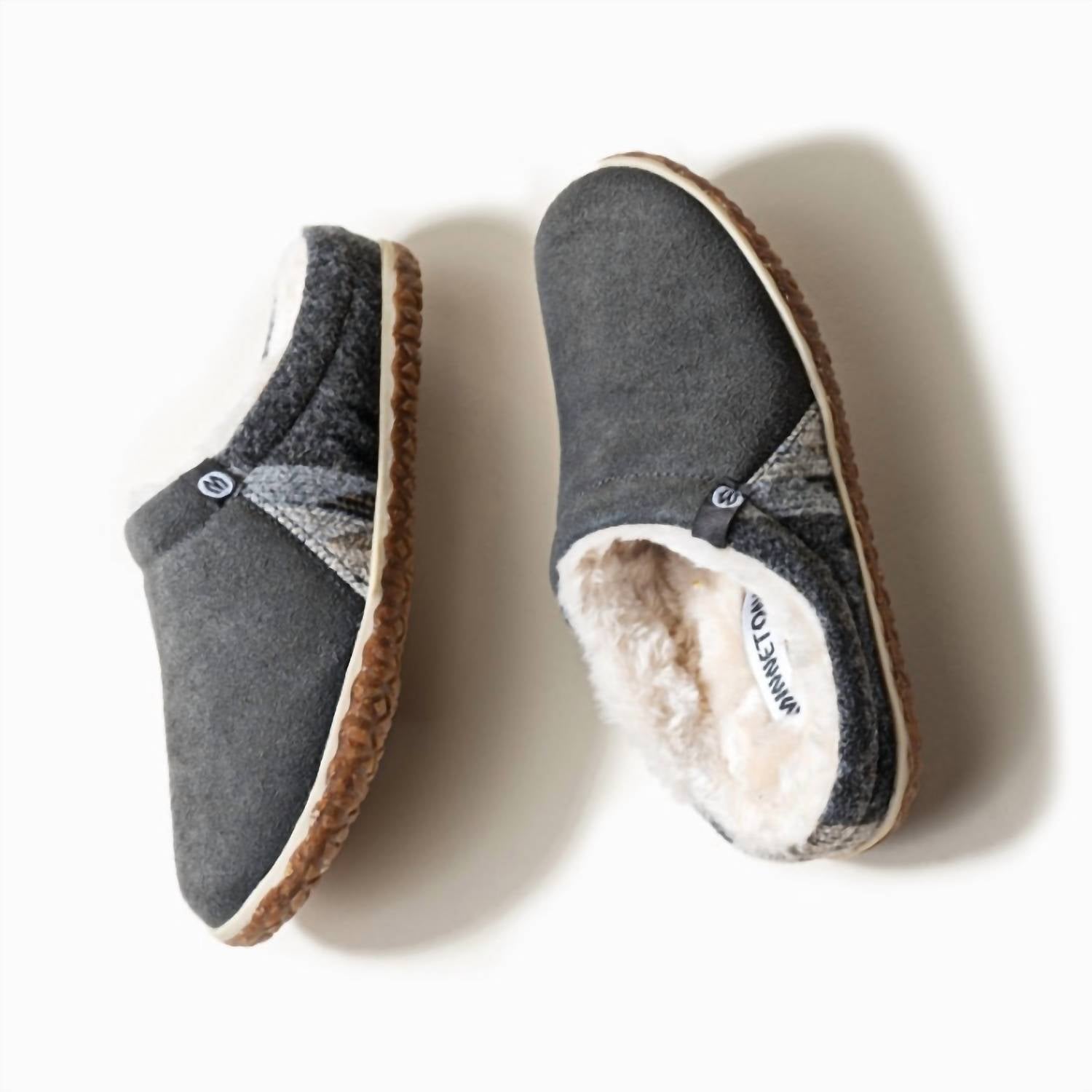 A trend that everyone is loving and this style might just be our favorite. Introducing the Women's Tahoe Clogs by Minnetonka, a must-have for your fall adventures in Grey Multi. These clogs boast a water and stain-resistant suede upper with a cozy pile lining for warmth and comfort. The removable contoured footbed and MinnTREAD rubber + rice husk sole ensure support and traction, making them perfect for indoor and outdoor wear. Elevate your minimalist style with this versatile piece, designed for ultimate relaxation during your vacation.